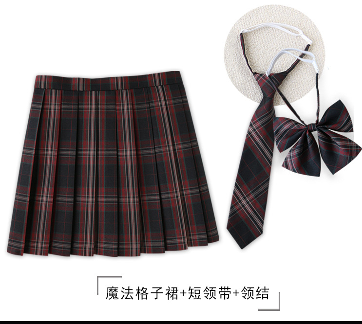 • 매직 체크 무늬 스커트 + 짧은 넥타이 + 나비 넥타이