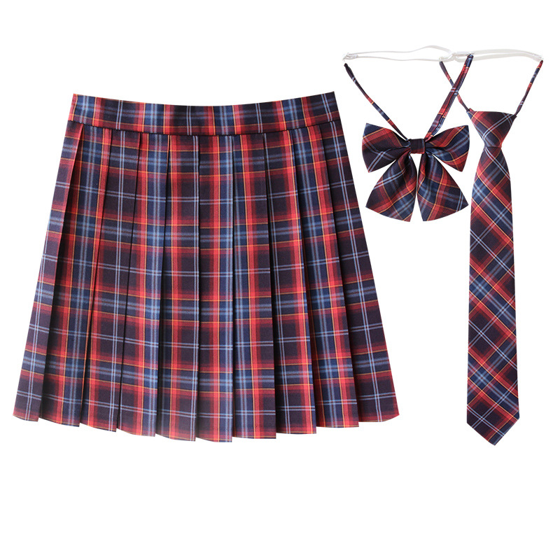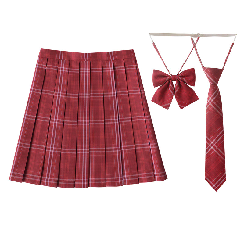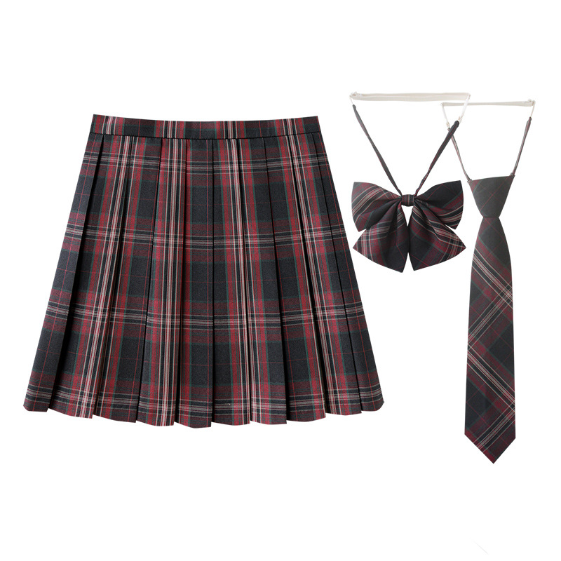• 대추 체크무늬 스커트 + 넥타이 + 나비넥타이