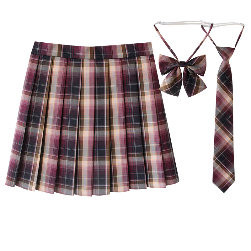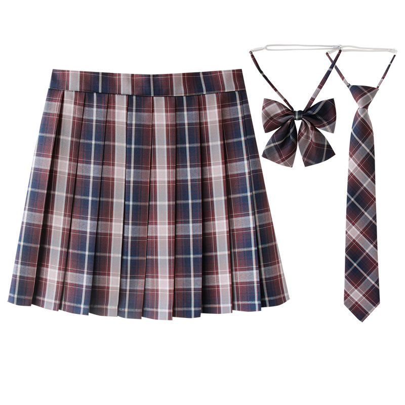 • 포도 체크 무늬 스커트 + 넥타이 + 나비 넥타이