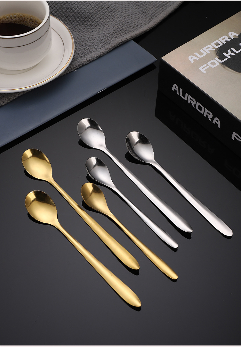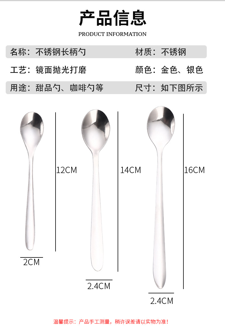 스테인레스 스틸 긴 손잡이 작은 숟가락 두꺼운 가정용 카페 아이스크림 스푼 믹싱 스푼 머그 스푼 도매