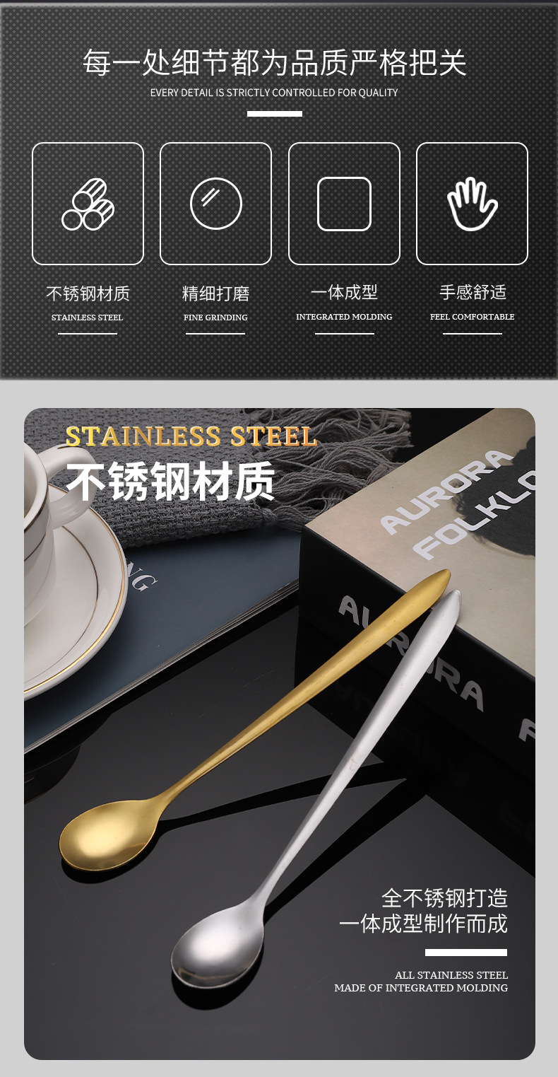 스테인레스 스틸 긴 손잡이 작은 숟가락 두꺼운 가정용 카페 아이스크림 스푼 믹싱 스푼 머그 스푼 도매스토어 가기