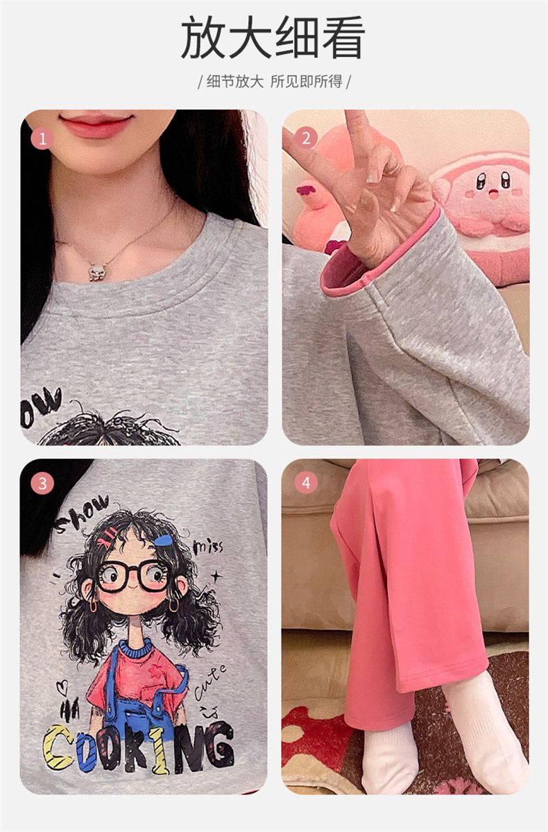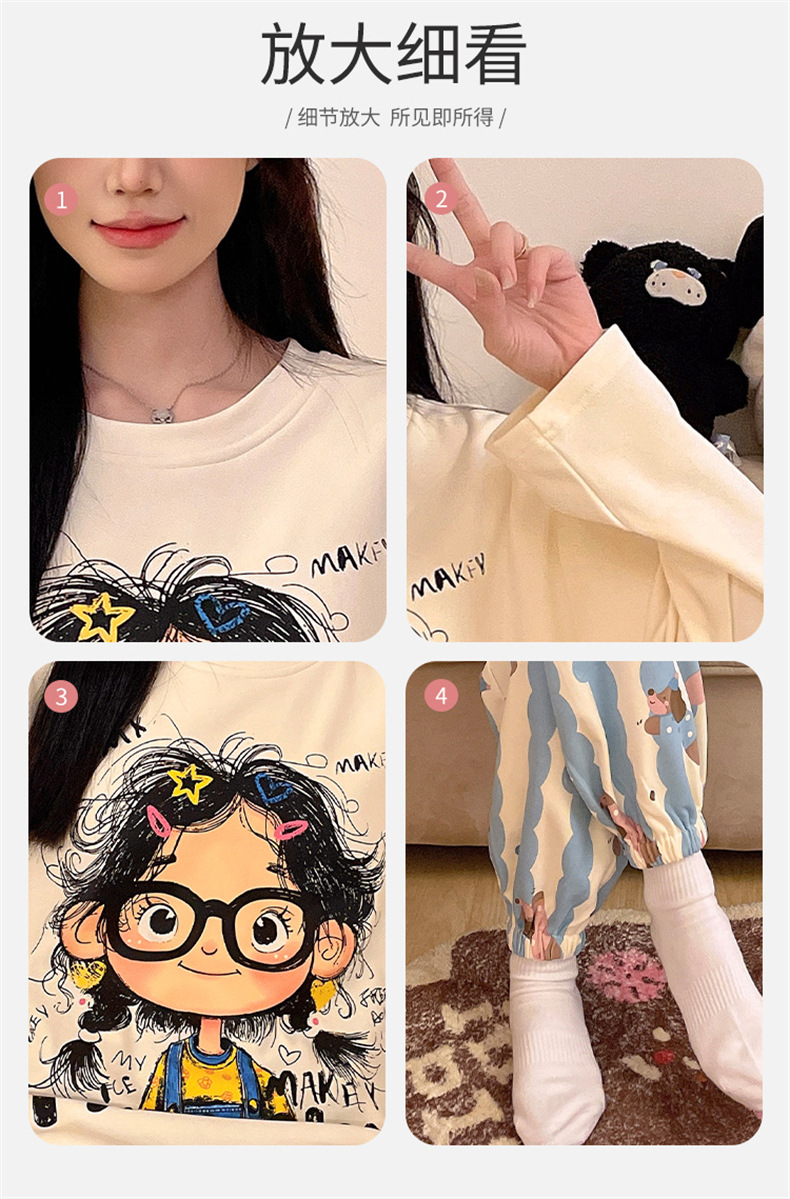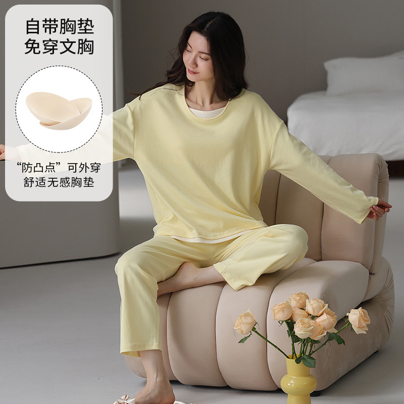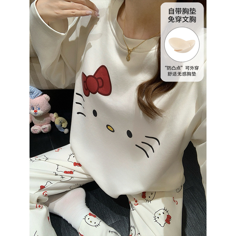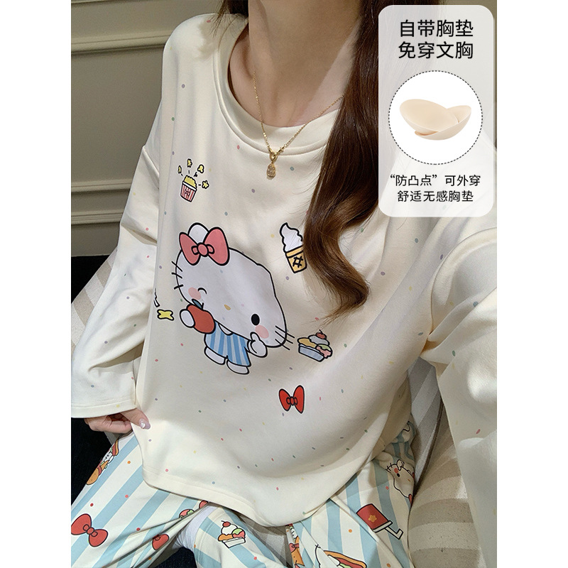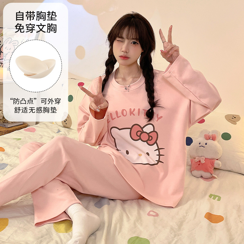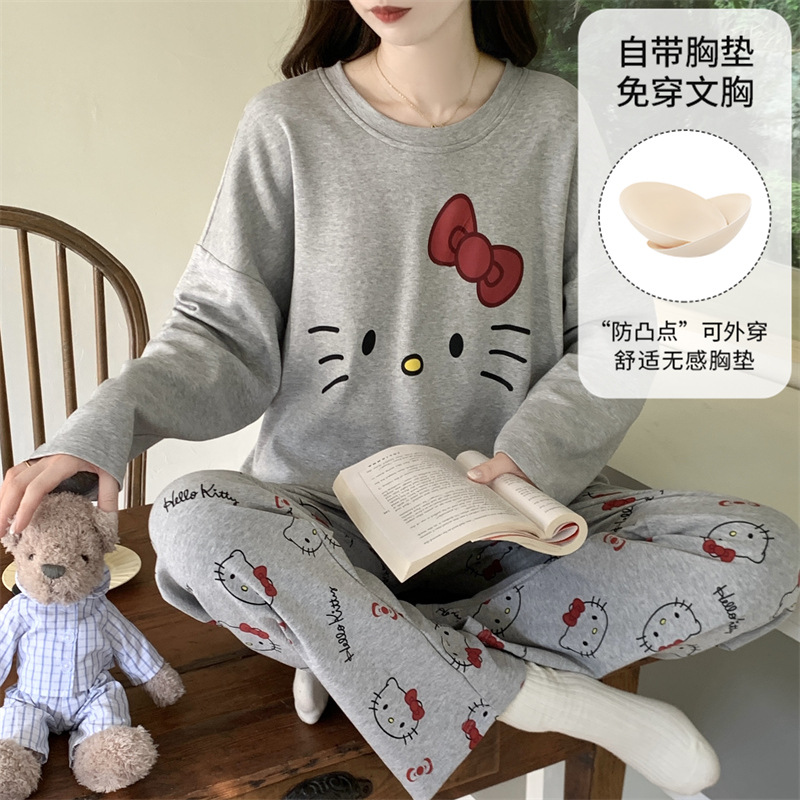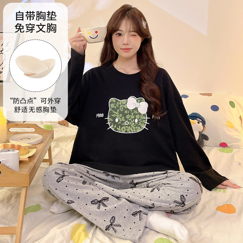 가슴 패드로 긴 소매 모조 면 잠옷 여자의 인터넷 연예인 세트 가을과 겨울 새로운 귀여운 학생 만화 가정 옷스토어 가기