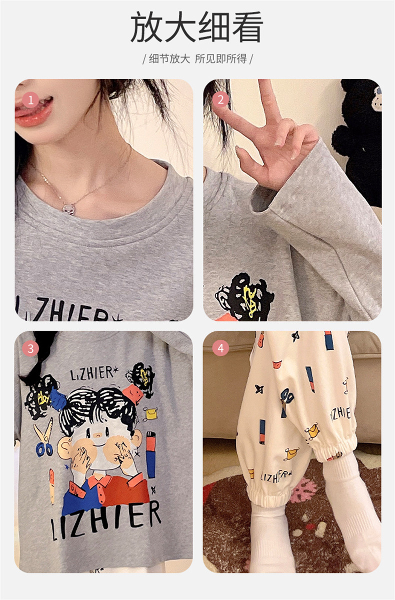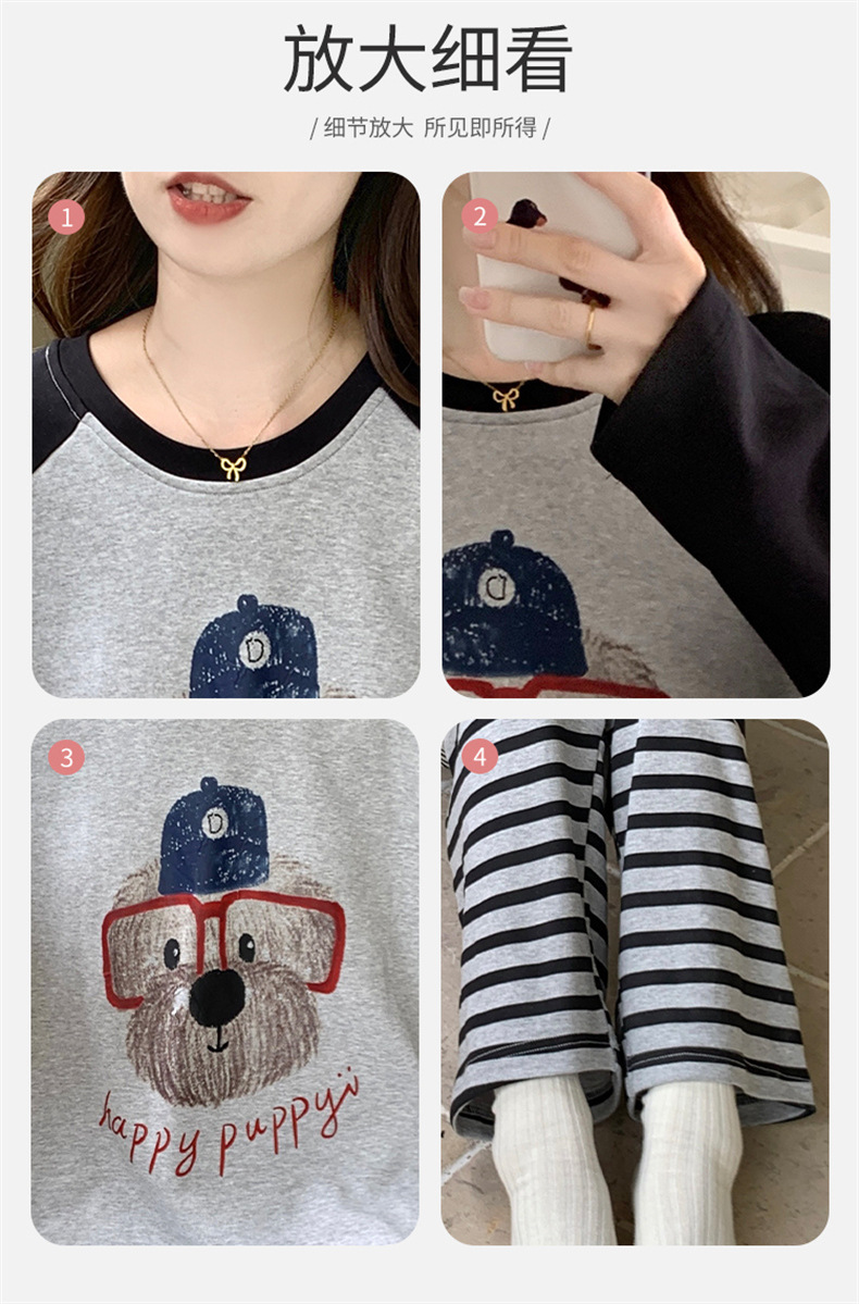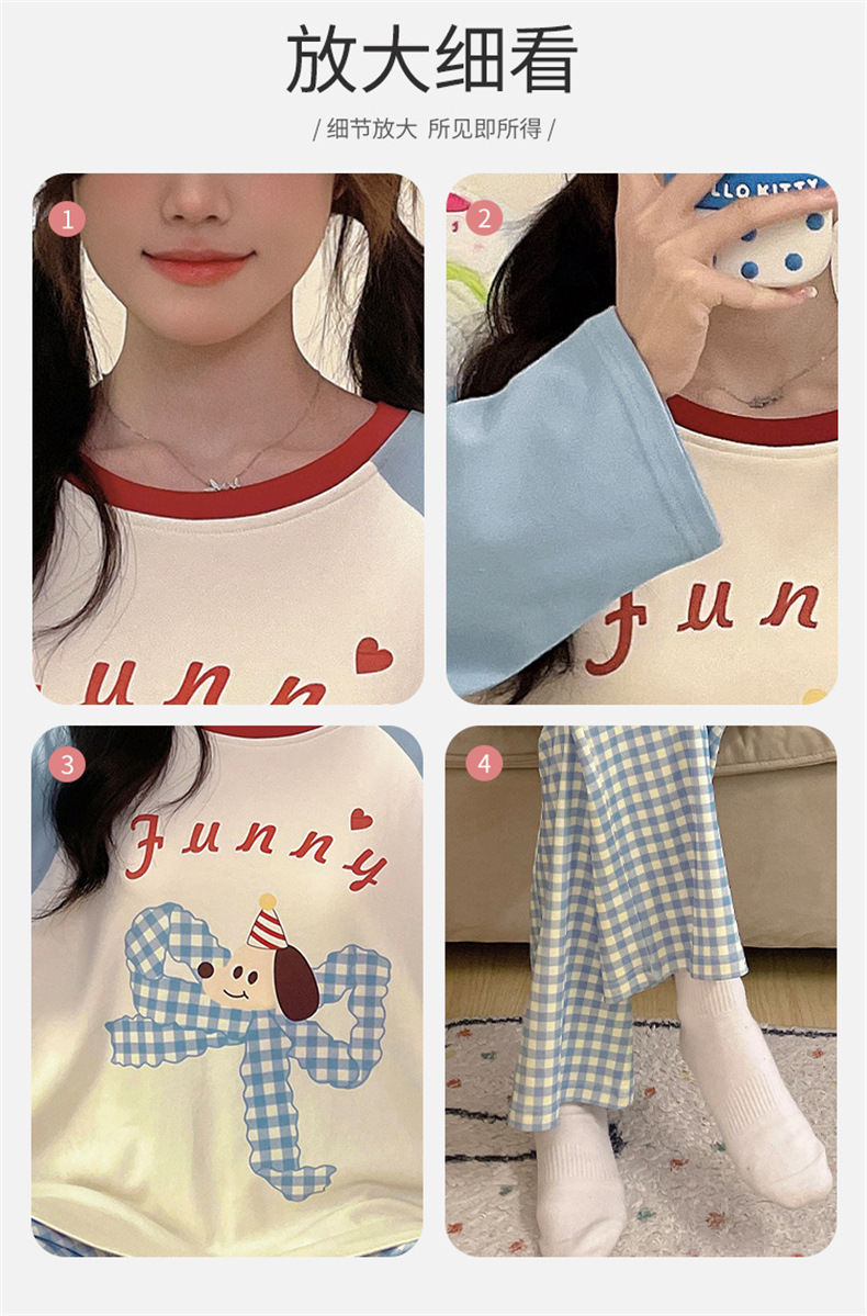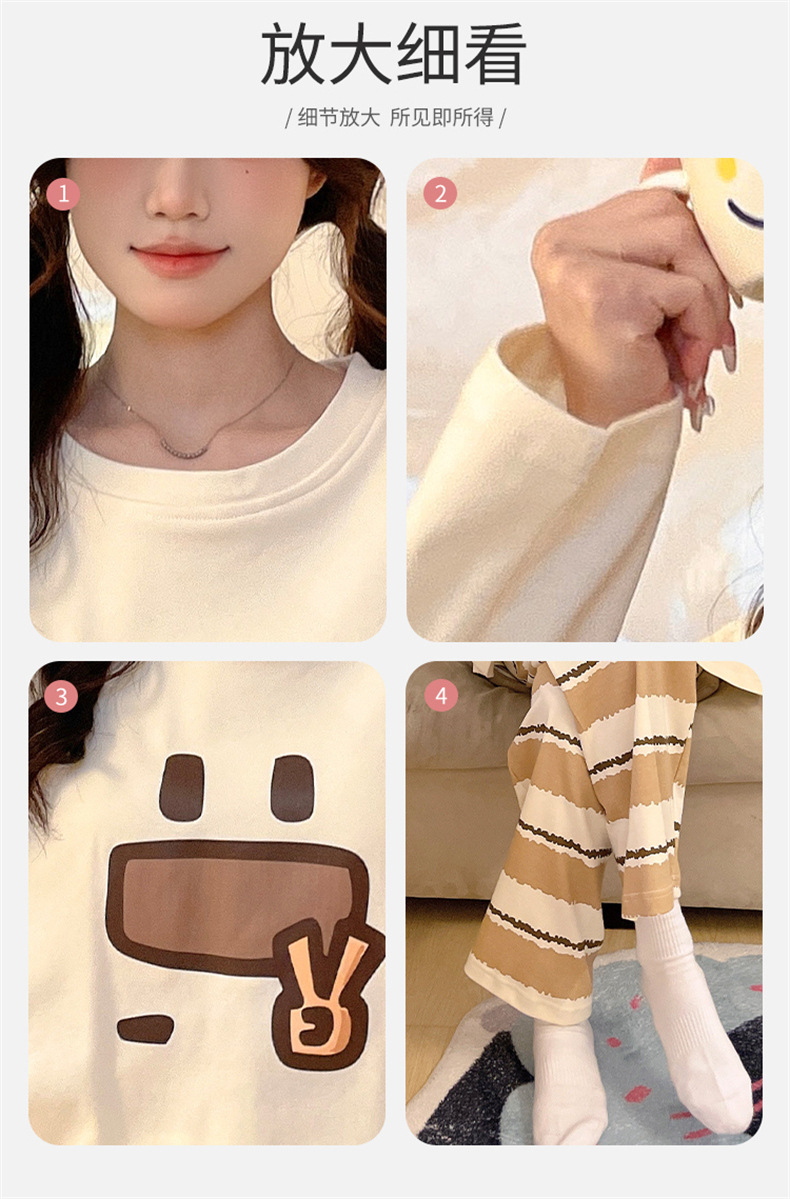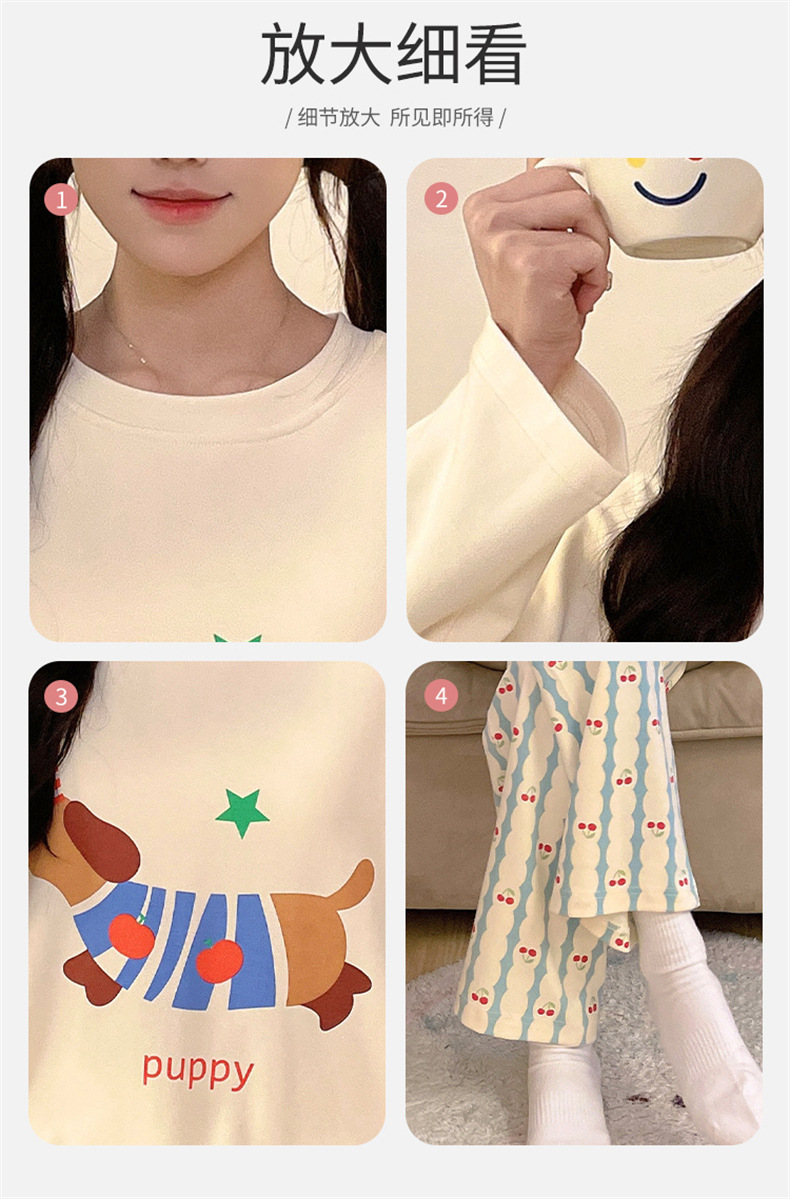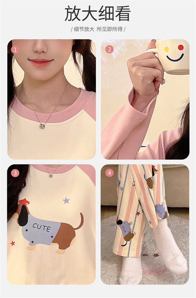 가슴 패드로 긴 소매 모조 면 잠옷 여자의 인터넷 연예인 세트 가을과 겨울 새로운 귀여운 학생 만화 가정 옷스토어 가기