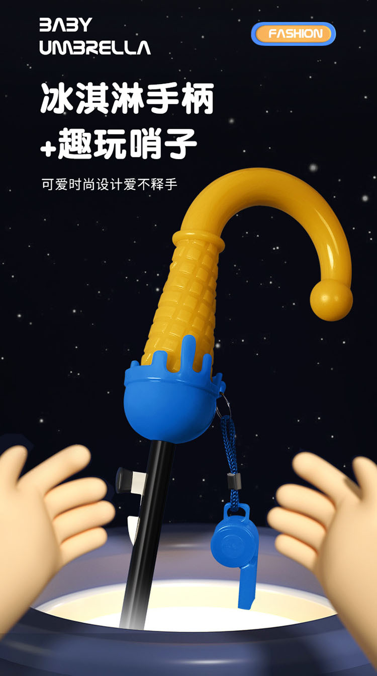 방수 케이스 만화 아이스크림 어린이 우산 자동 귀여운 어린이 우산 남자와 여자의 유치원 양산 긴 손잡이 써니 우산