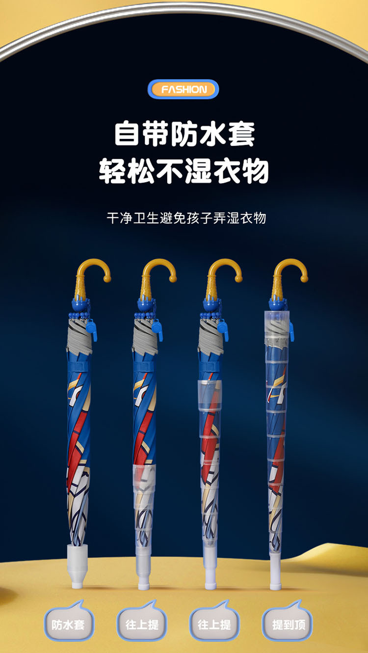 방수 케이스 만화 아이스크림 어린이 우산 자동 귀여운 어린이 우산 남자와 여자의 유치원 양산 긴 손잡이 써니 우산스토어 가기