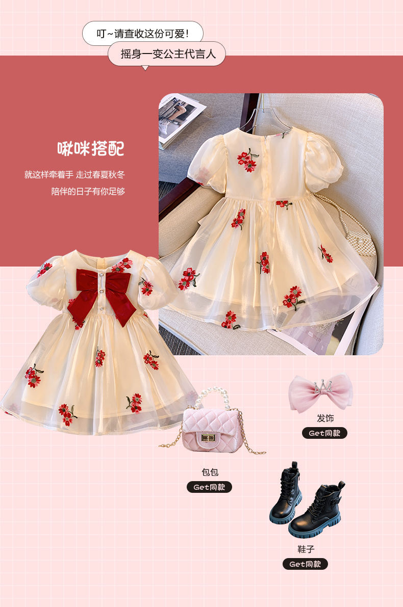 여자 원피스 여름 2023 새로운 여름 반팔 세련된 공주 원피스 아기 소녀 어린이 메쉬 원피스 여름 원피스스토어 가기