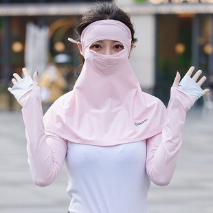 防晒口罩女冰丝面罩帽檐夏天薄款遮阳帽子眼角防紫外线遮全脸面纱 RMB:10.50