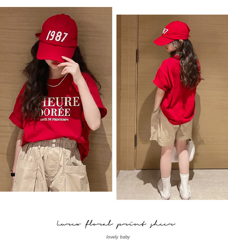 여자 반팔 티셔츠 2024 여름 새로운 한국 스타일 서양식 여자 붉은 글자 바닥 셔츠 어린이상의스토어 가기