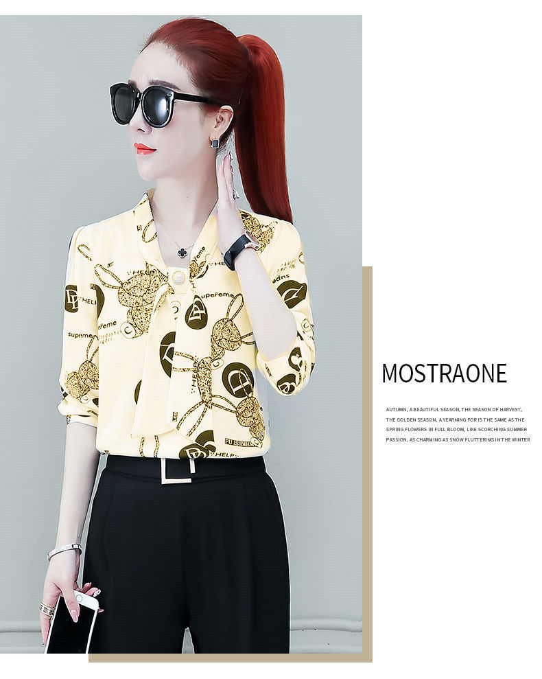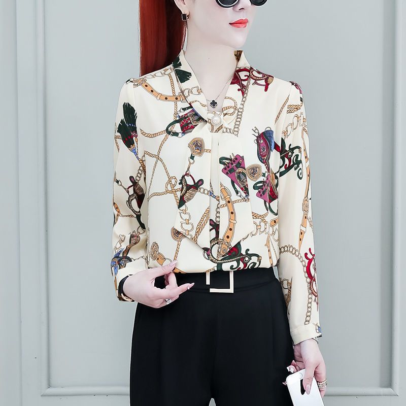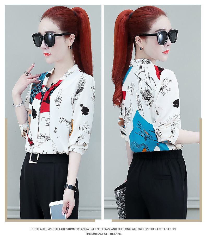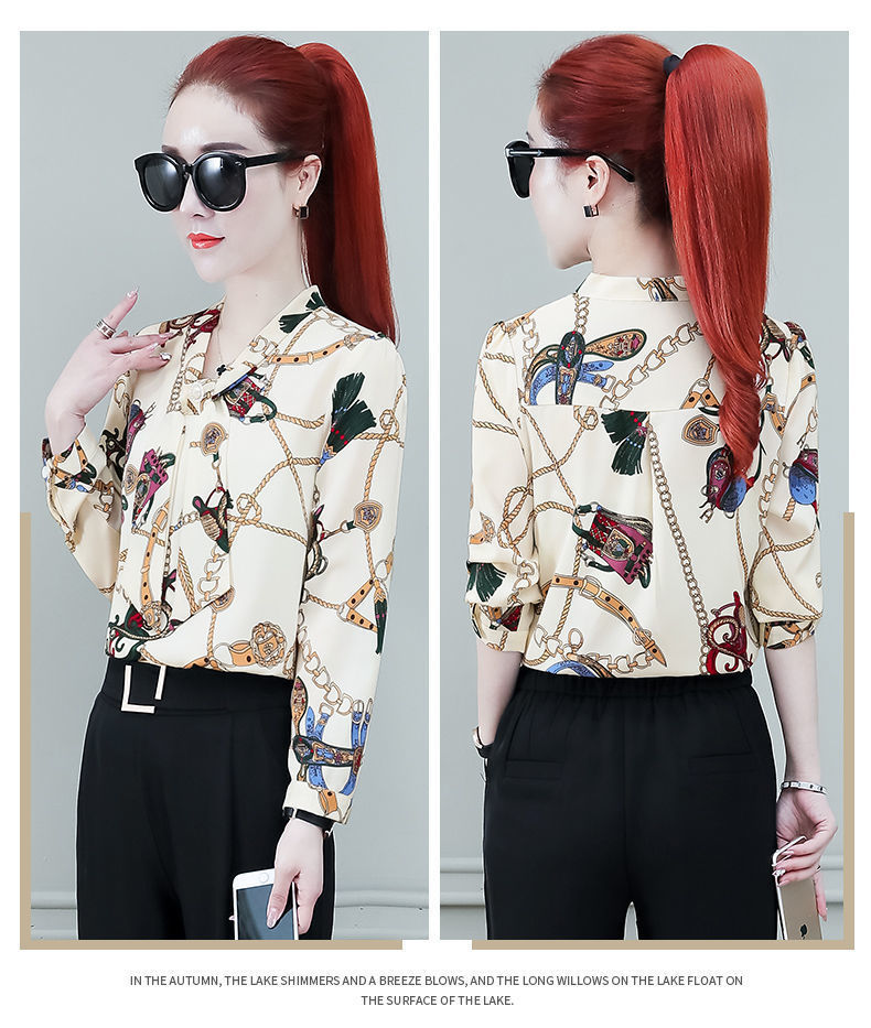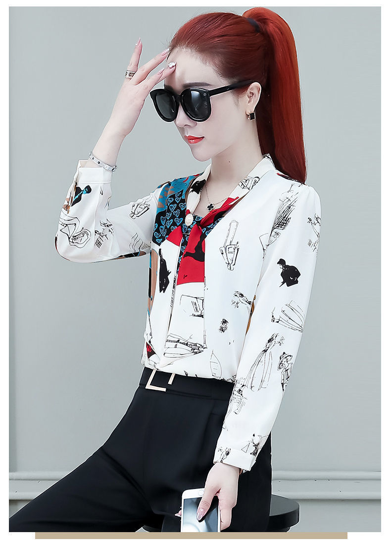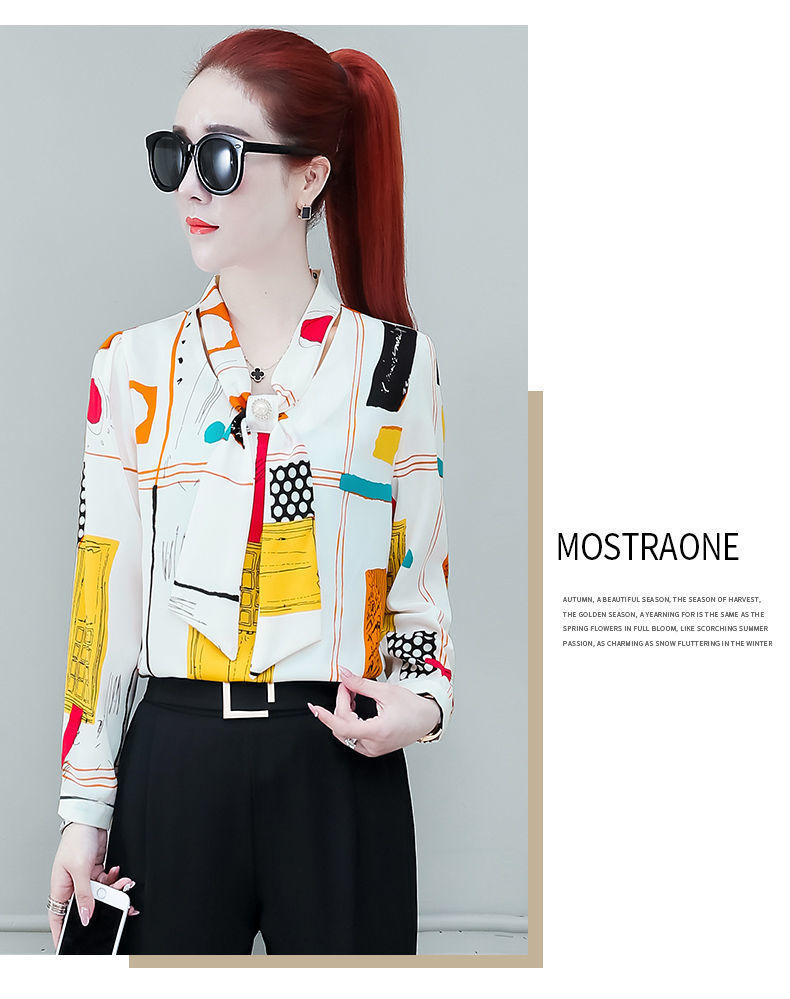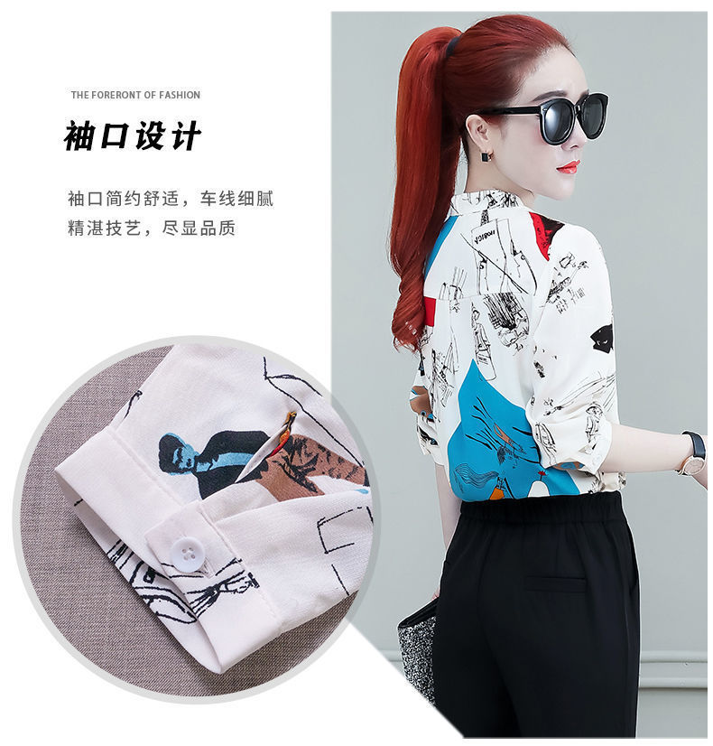 쉬폰 셔츠 여성용 긴 소매 2023 새로운 봄과 가을 세련된 느슨한 탑 배꼽 덮음 여성용 셔츠스토어 가기