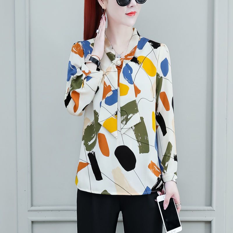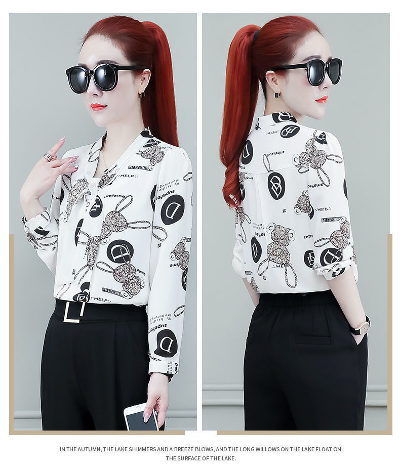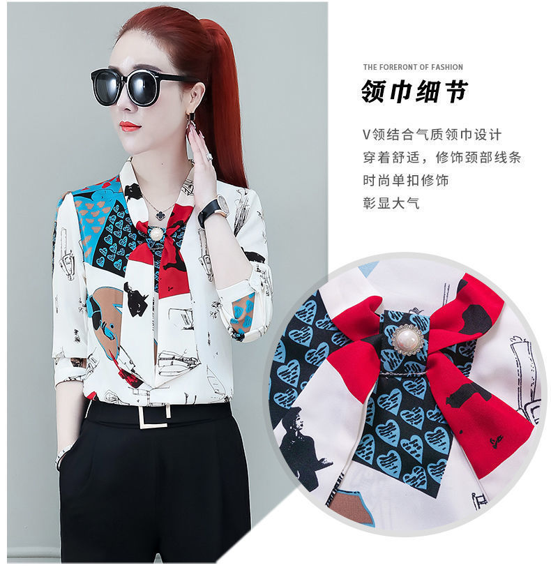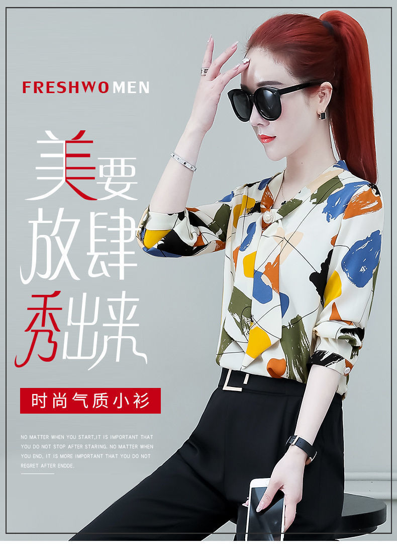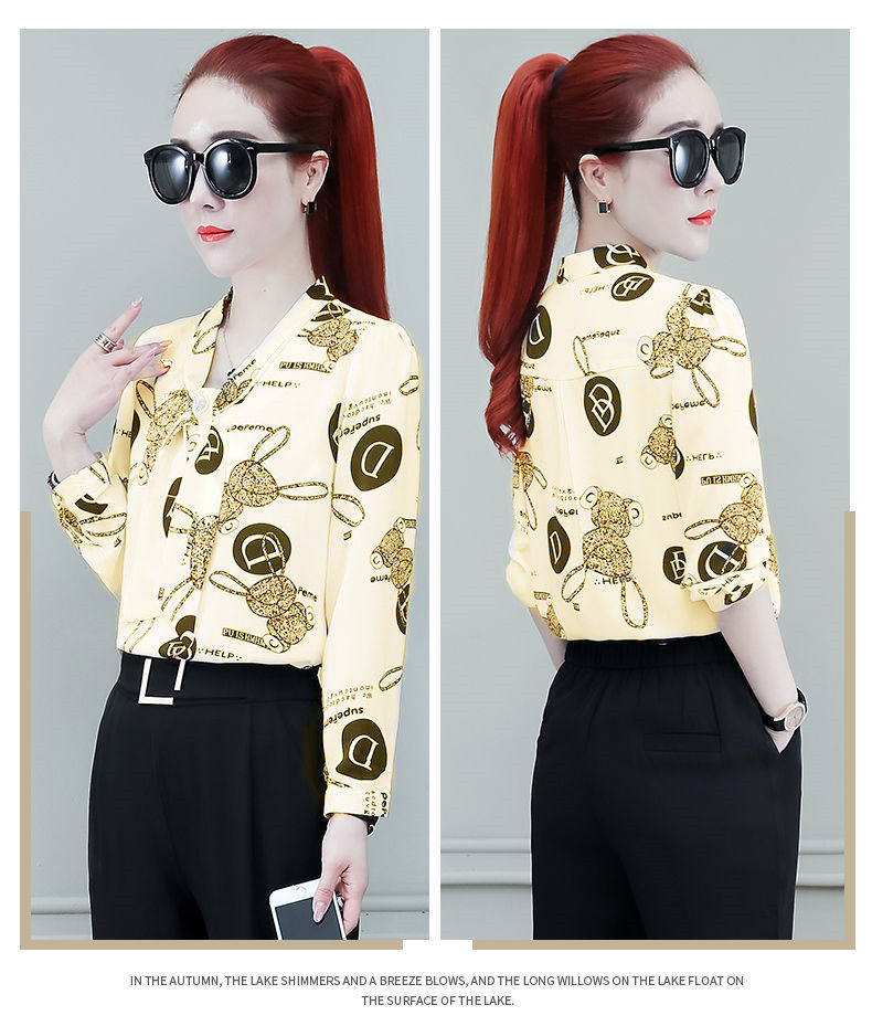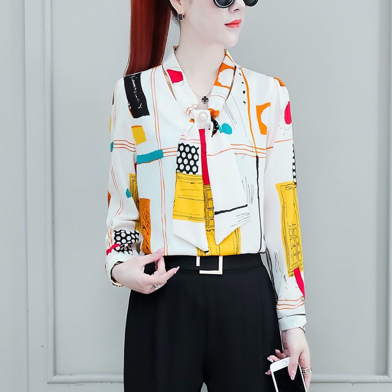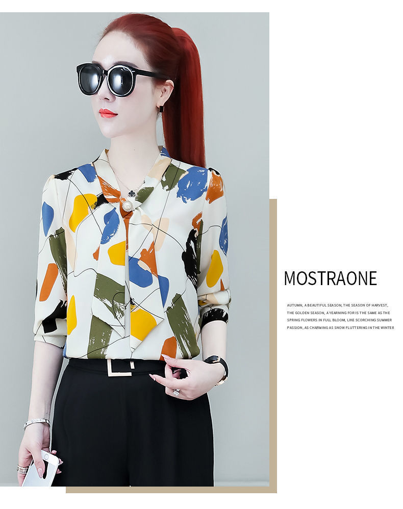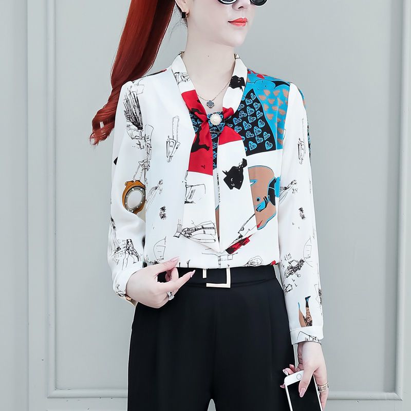 쉬폰 셔츠 여성용 긴 소매 2023 새로운 봄과 가을 세련된 느슨한 탑 배꼽 덮음 여성용 셔츠스토어 가기