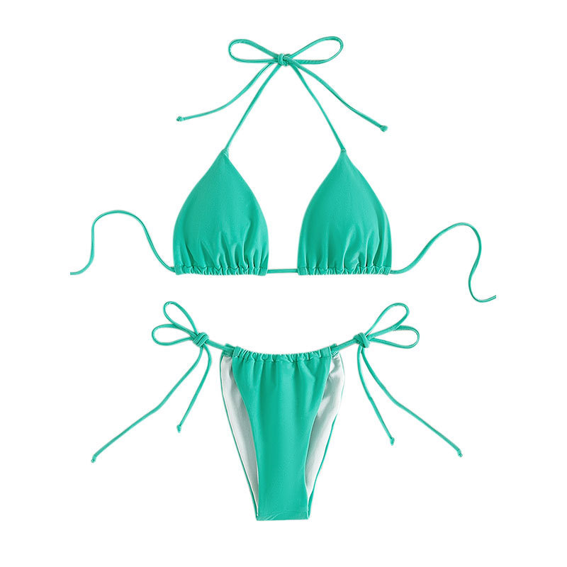 2024 새로운 국경 다색 비치 수영복 비키니 유럽과 미국의 섹시 백리스 솔리드 컬러 테더 3 점 수영복