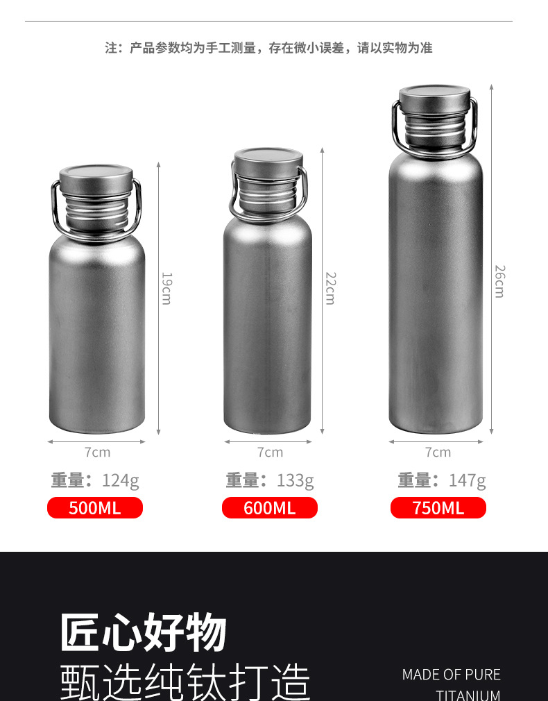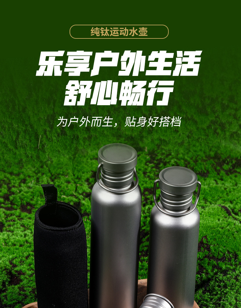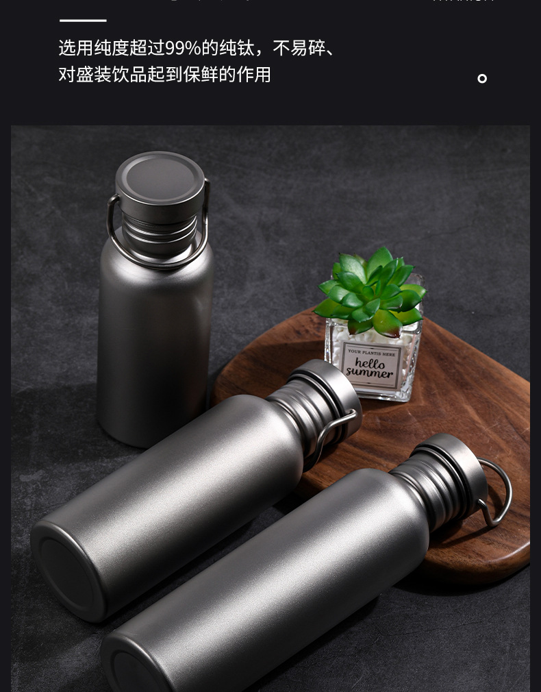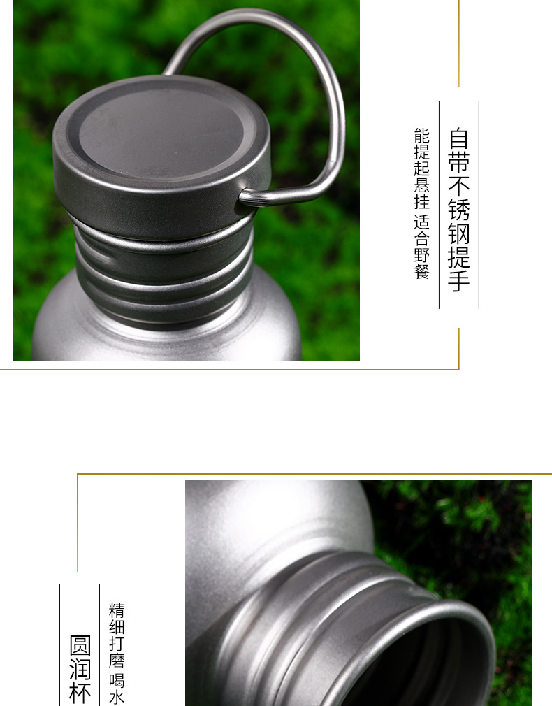 순수 티타늄 야외 스포츠 주전자 등산 및 사이클링 캠핑 단일 레이어 티타늄 컵 여행 피크닉 휴대용 순수 티타늄 물병