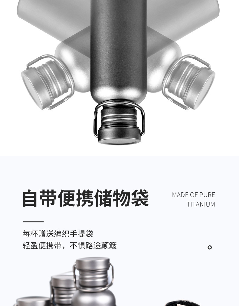 순수 티타늄 야외 스포츠 주전자 등산 및 사이클링 캠핑 단일 레이어 티타늄 컵 여행 피크닉 휴대용 순수 티타늄 물병스토어 가기