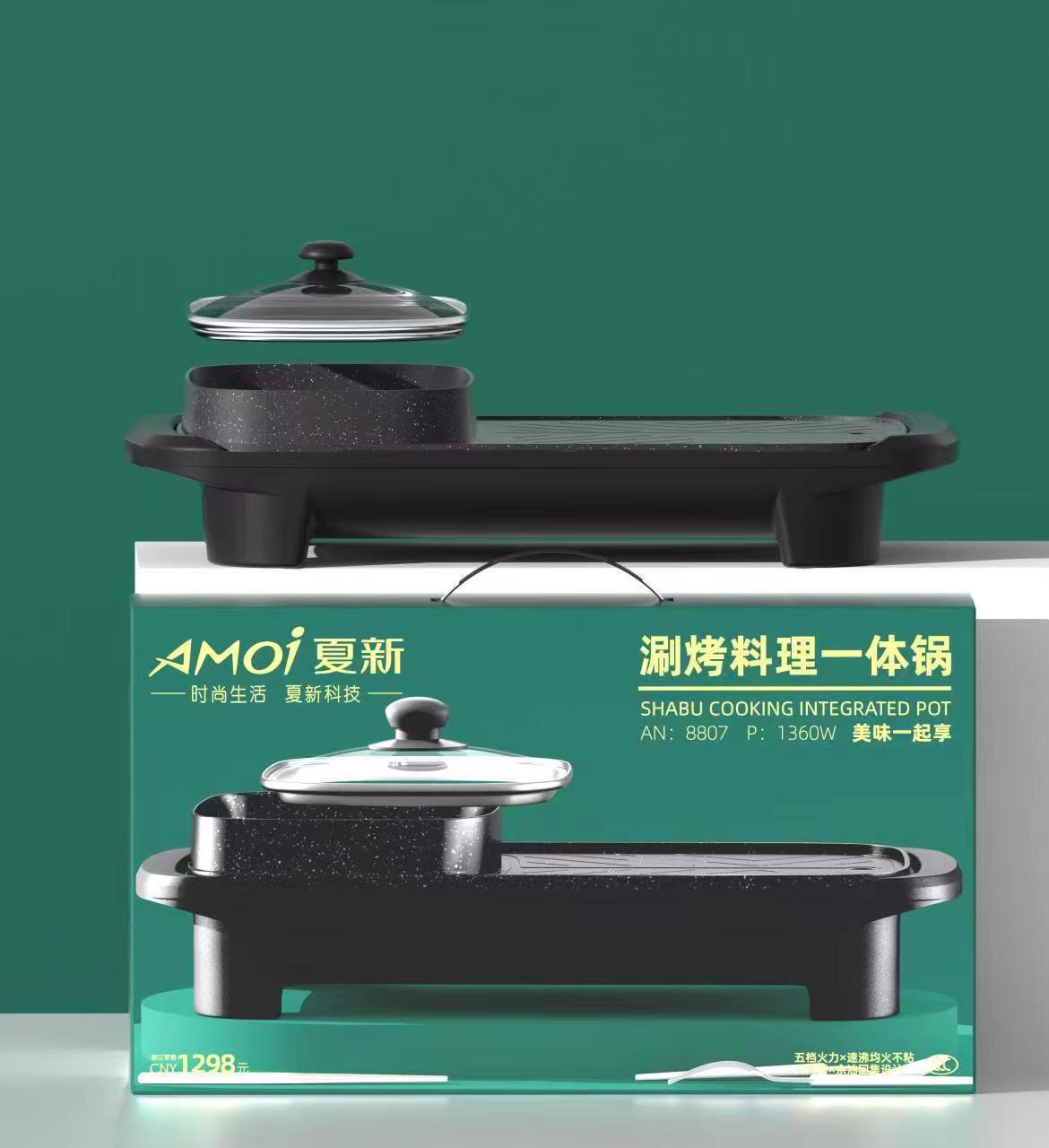 여름 새로운 다기능 비 스틱 전기 냄비 바베큐 기계 다목적 다목적 냄비