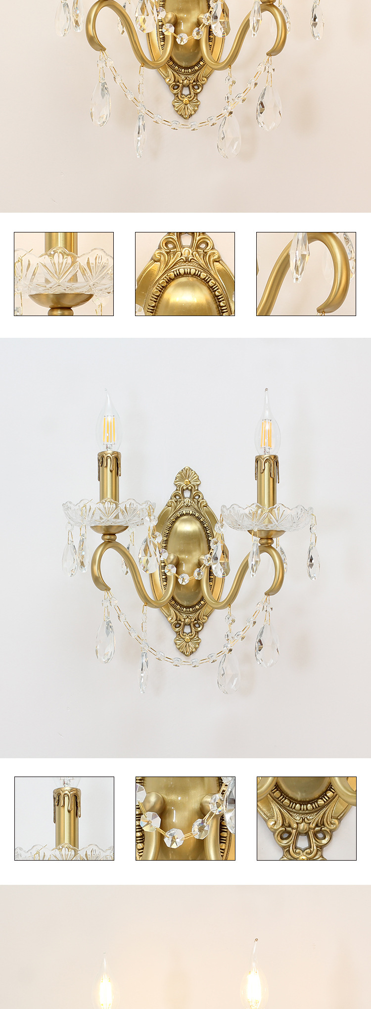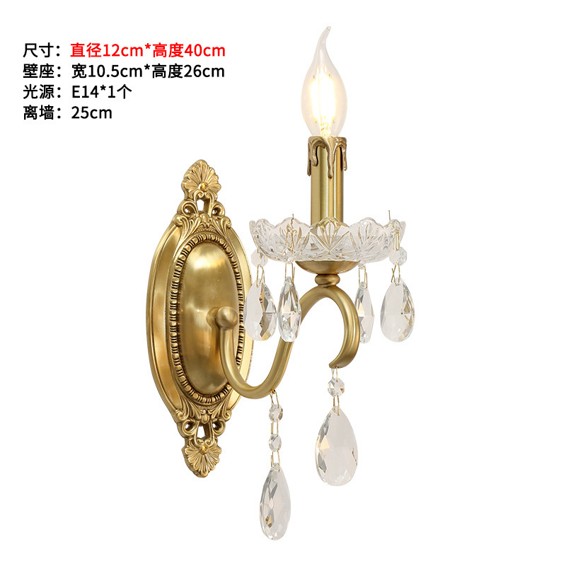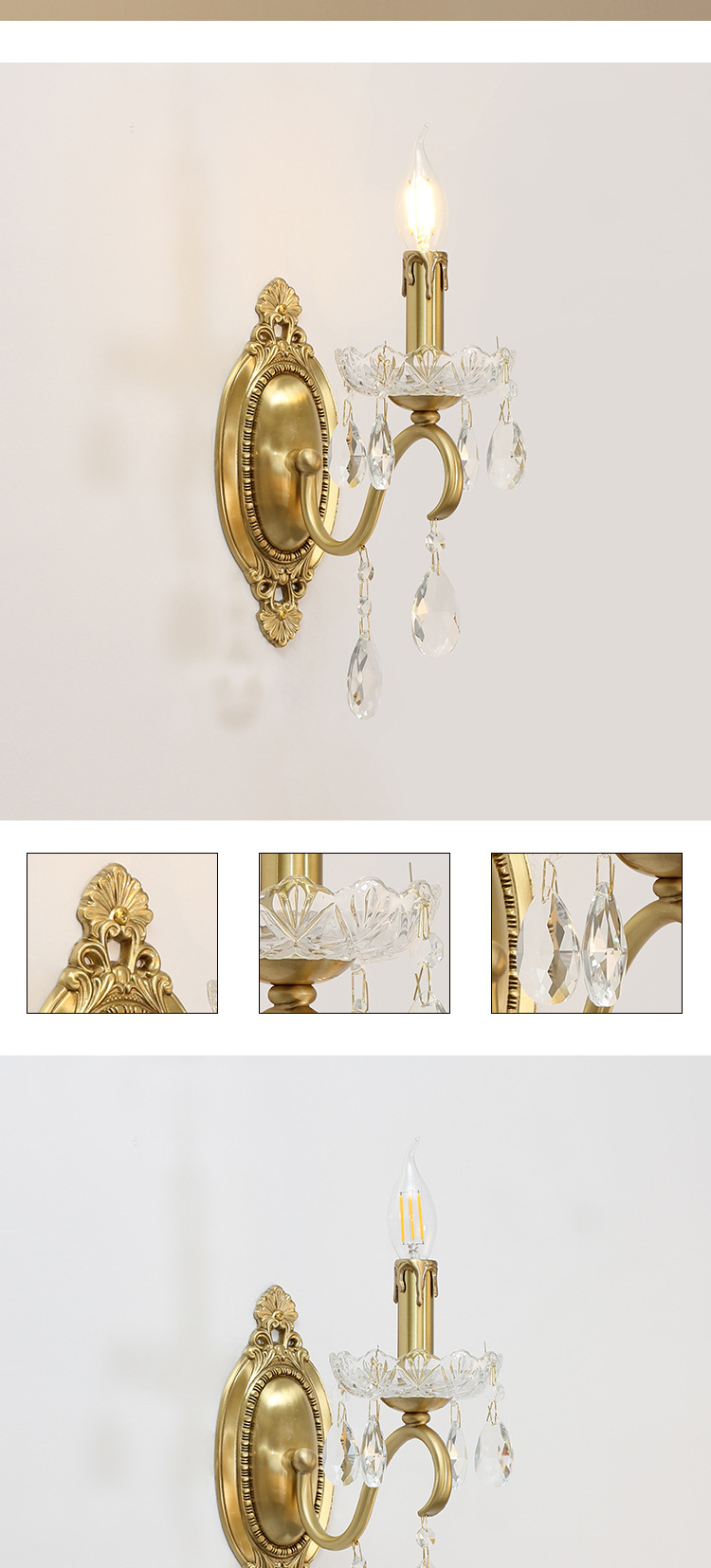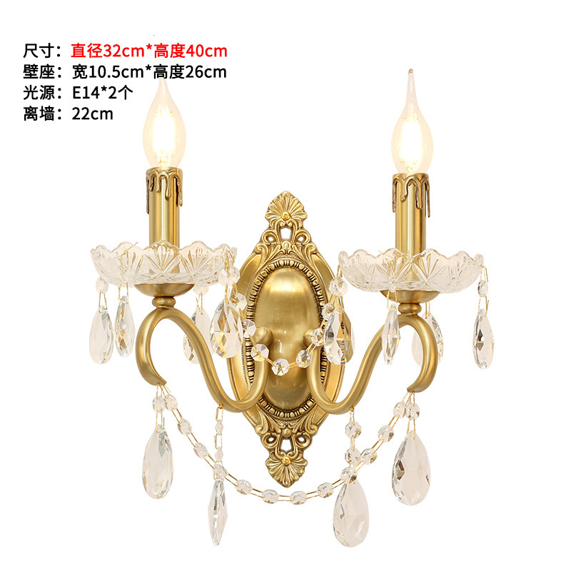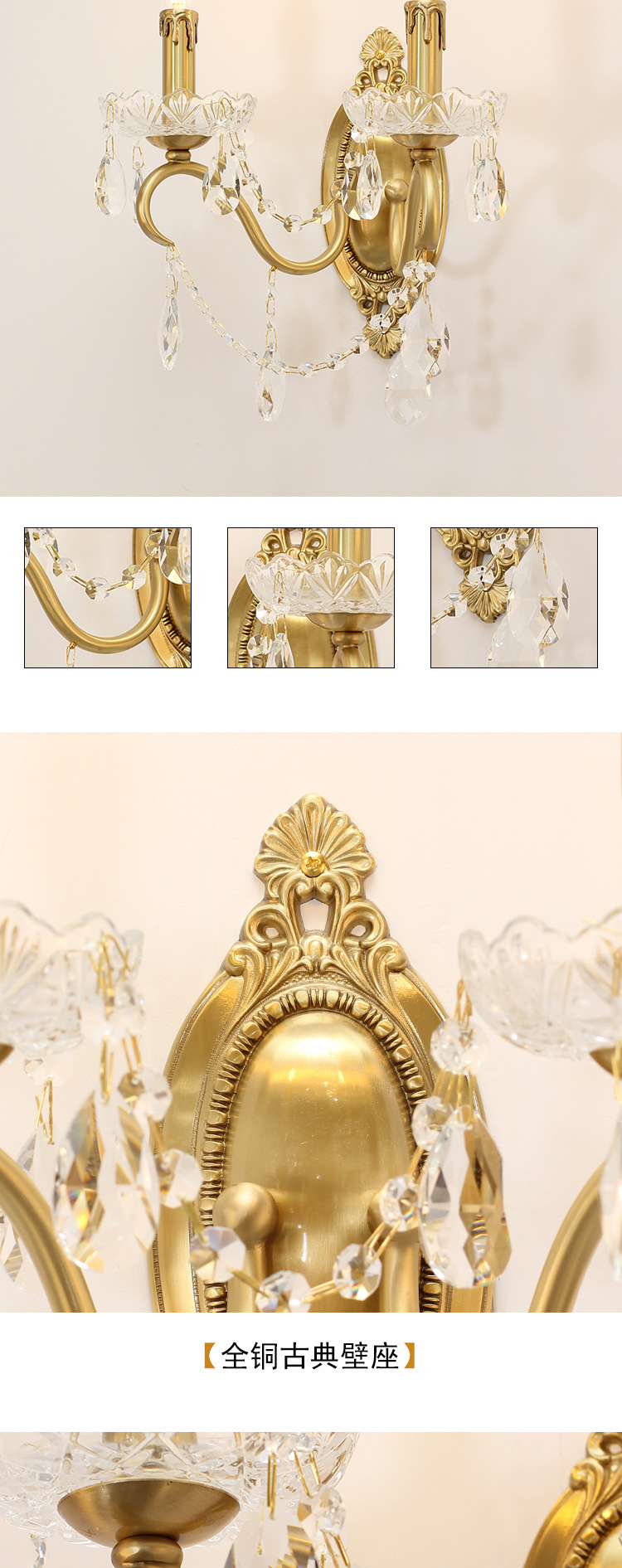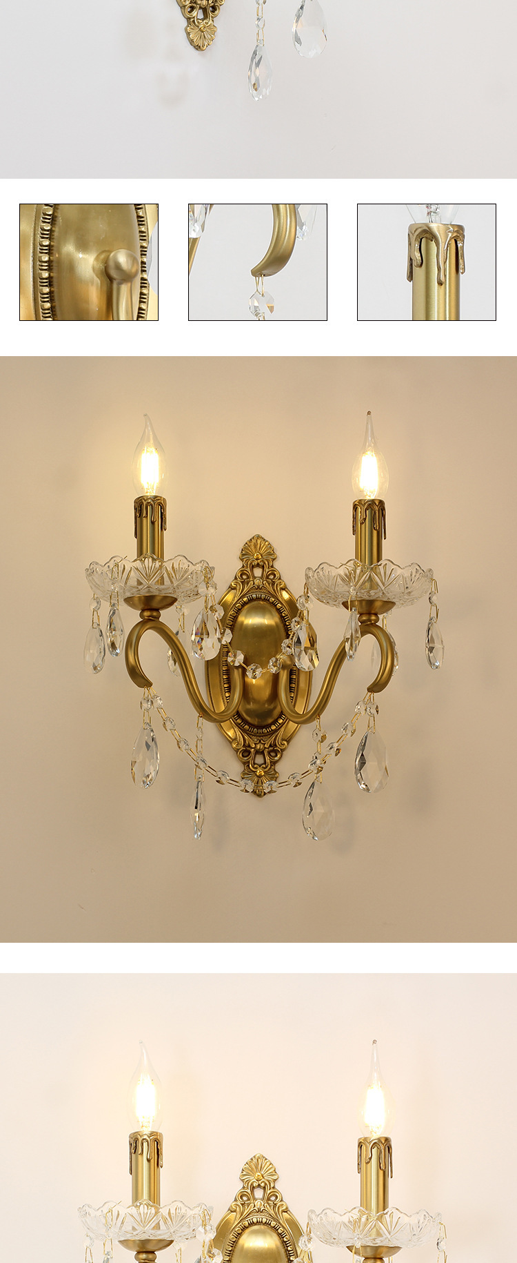 프랑스 레트로 크리스탈 램프 유럽 스타일 아메리칸 스타일 침실 거실 통로 계단 배경 벽 빛 럭셔리 모든 구리 벽 램프