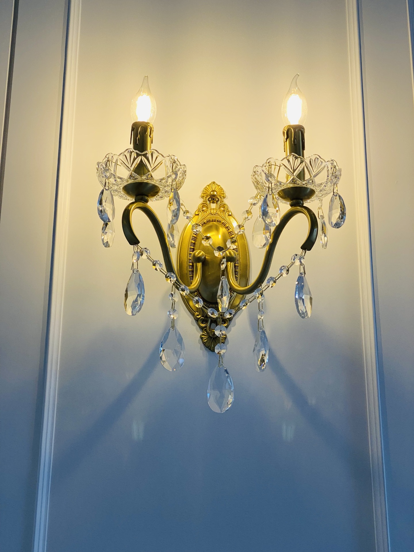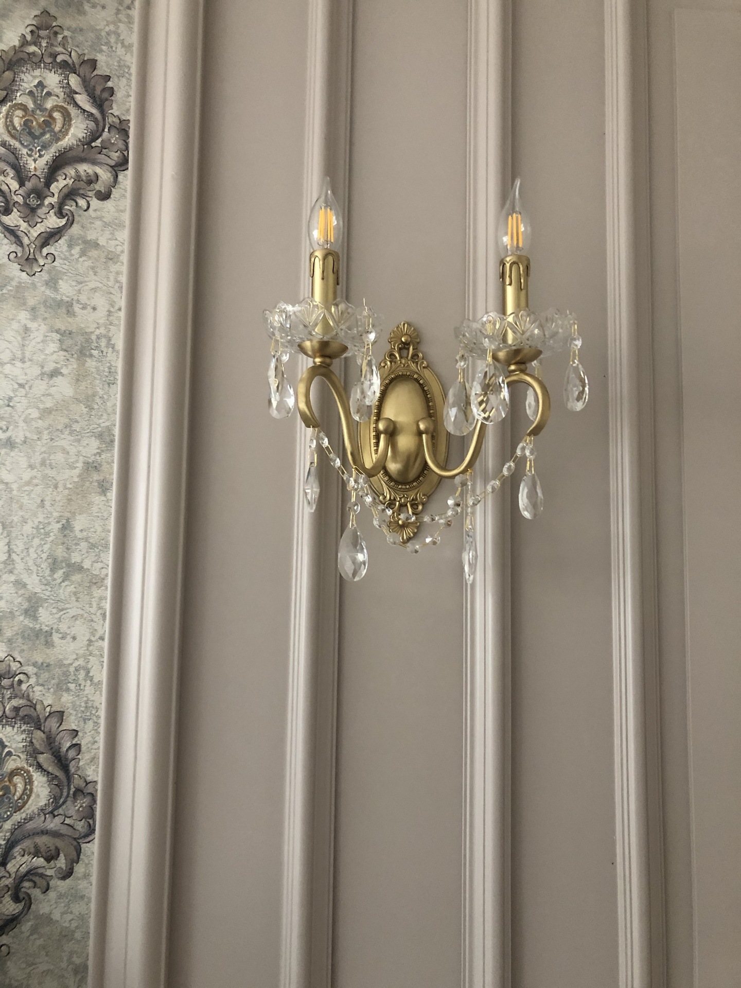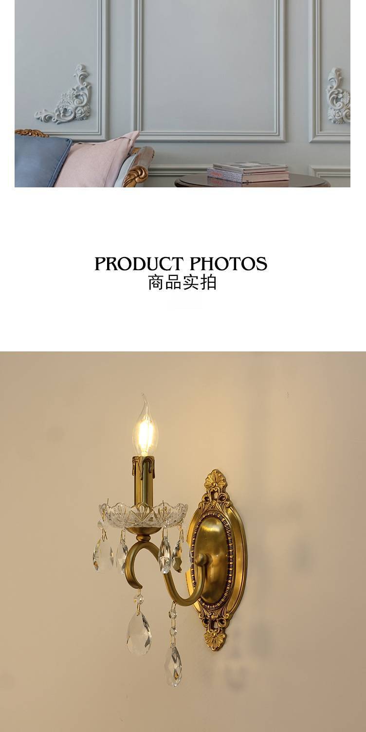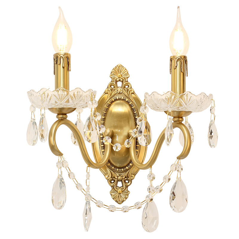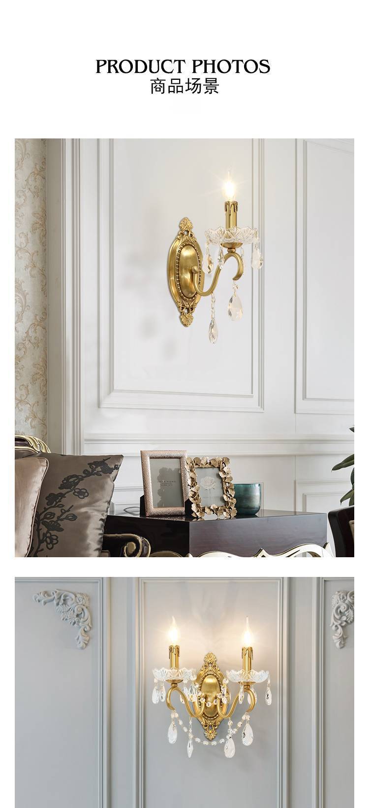 프랑스 레트로 크리스탈 램프 유럽 스타일 아메리칸 스타일 침실 거실 통로 계단 배경 벽 빛 럭셔리 모든 구리 벽 램프