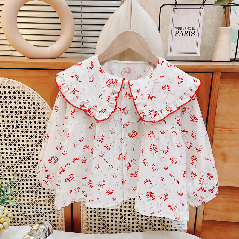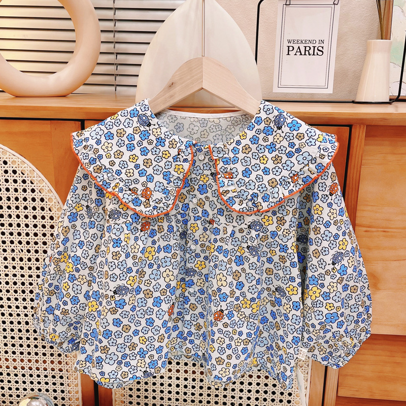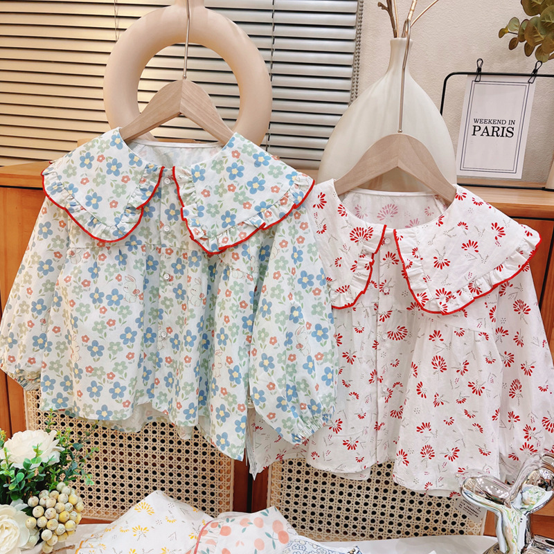 여자 셔츠 아기 긴 소매 봄 어린이 꽃 셔츠 여자 탑 새로운 공주 셔츠 옷깃