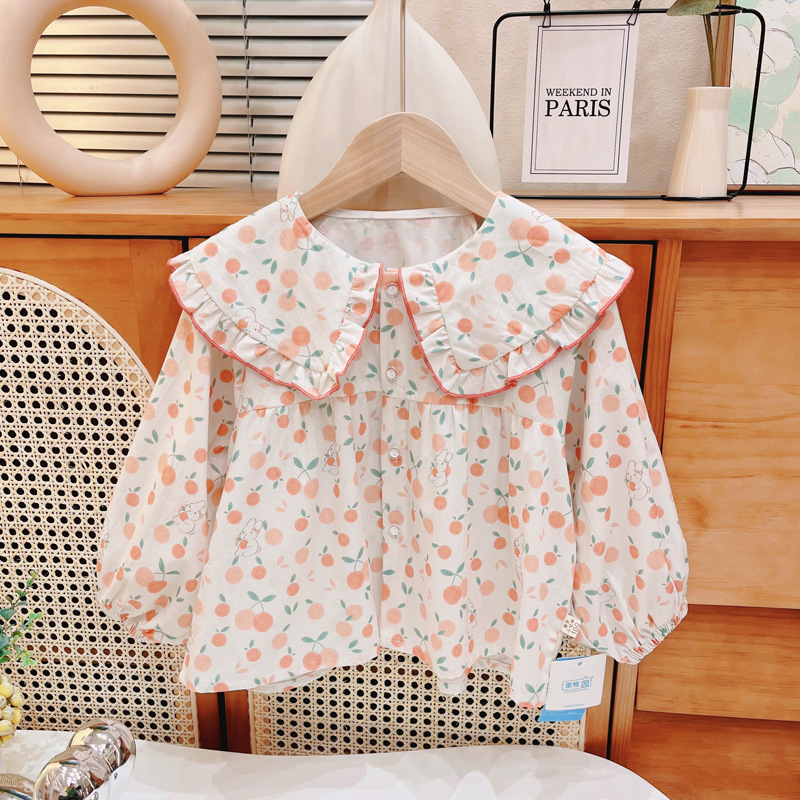 여자 셔츠 아기 긴 소매 봄 어린이 꽃 셔츠 여자 탑 새로운 공주 셔츠 옷깃스토어 가기