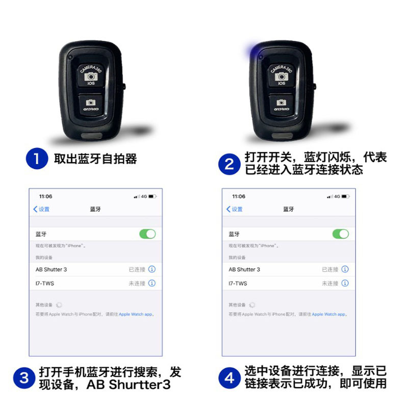 • 1.6 m 브래킷 + 휴대폰 클립 + 블루투스 사진사