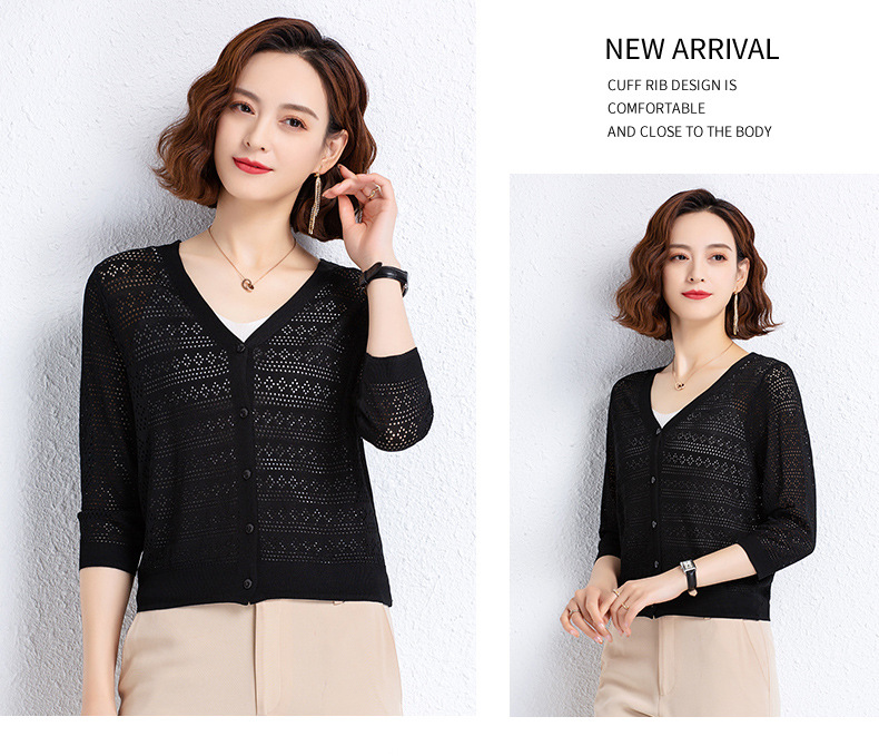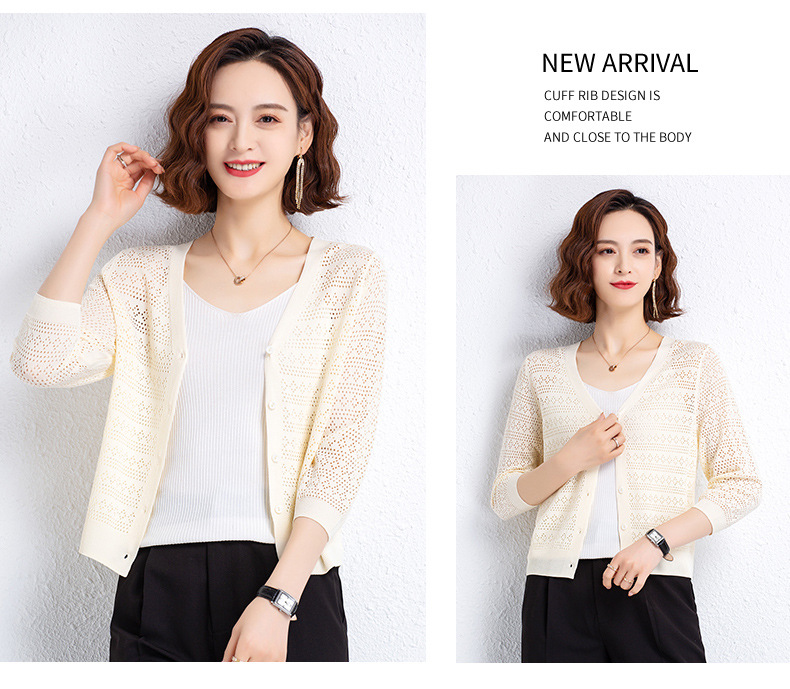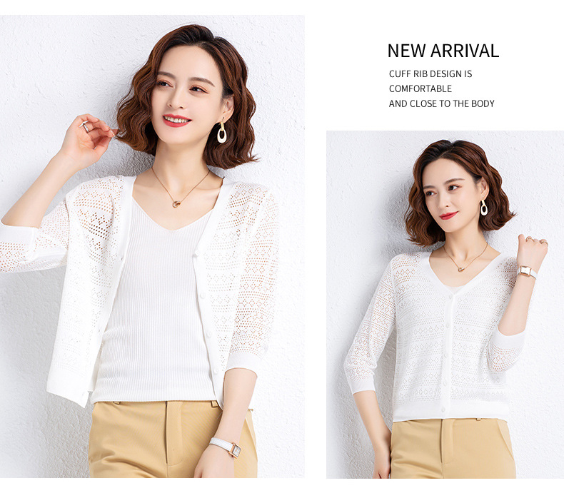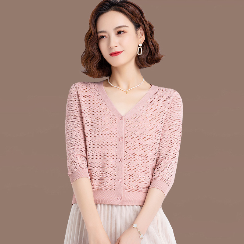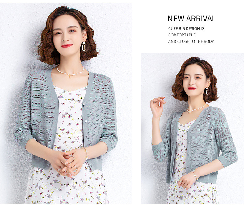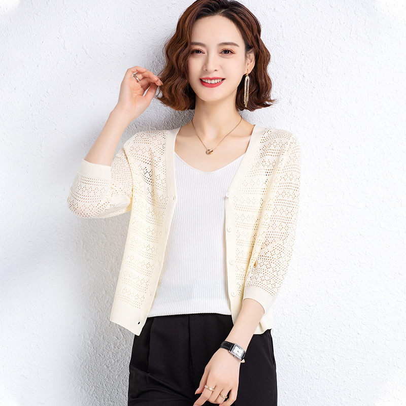 도매 태양 보호 의류 아이스 실크 니트 카디건 새로운 스타일 여성 여름 얇은 봄과 가을 속이 빈 작은 코트 외부
