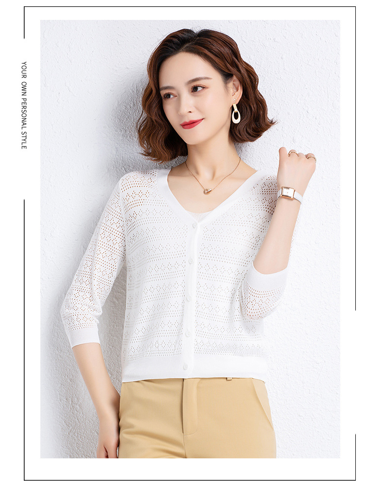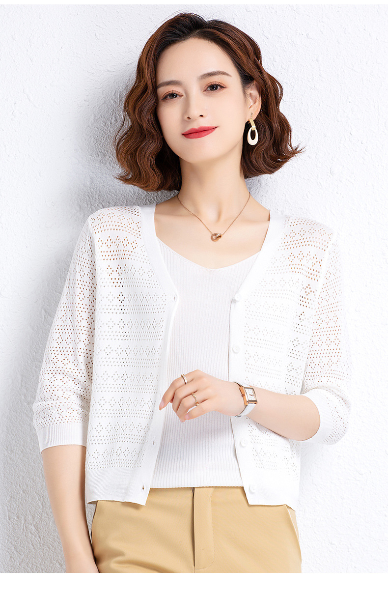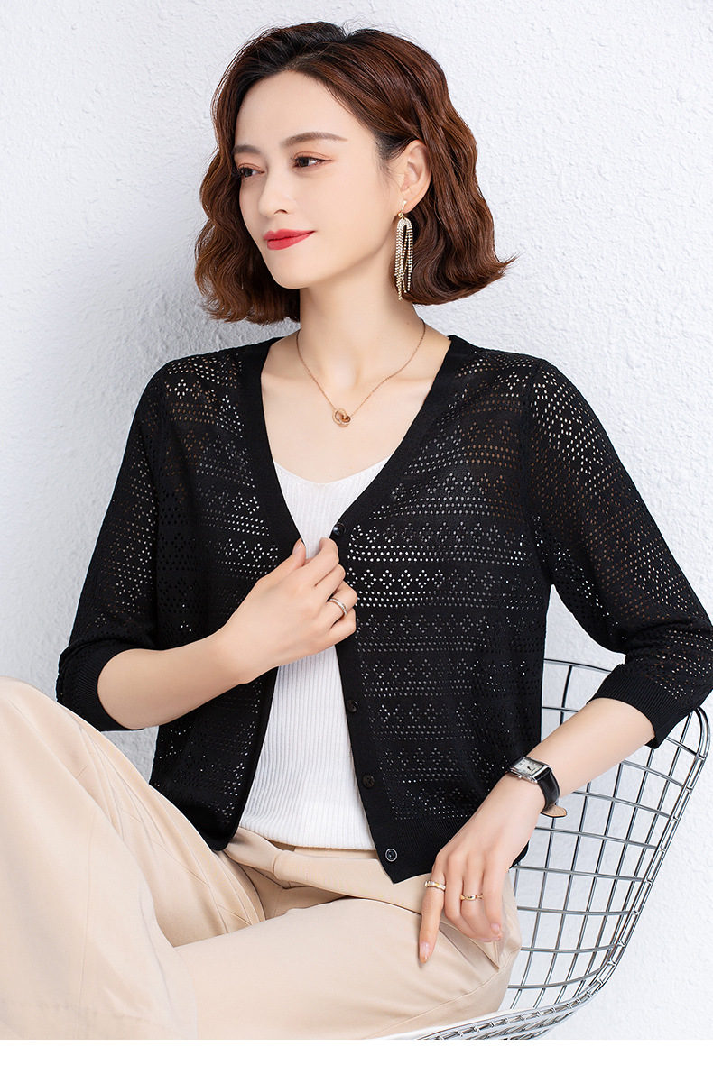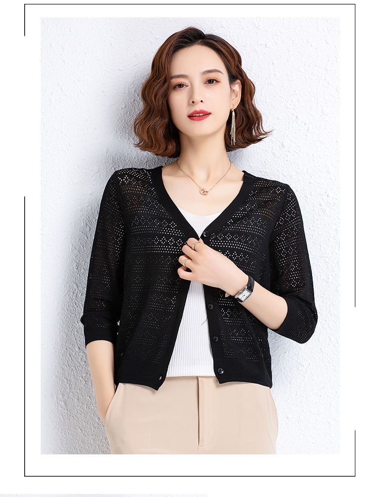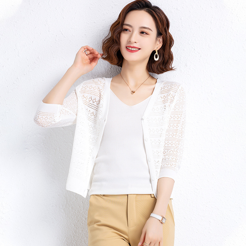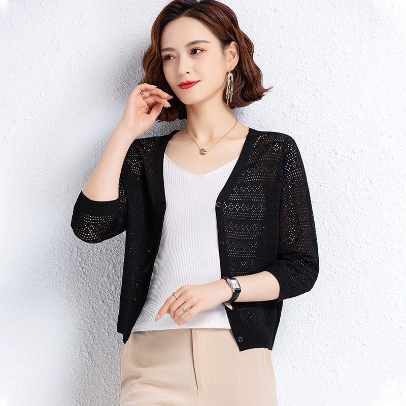 도매 태양 보호 의류 아이스 실크 니트 카디건 새로운 스타일 여성 여름 얇은 봄과 가을 속이 빈 작은 코트 외부스토어 가기