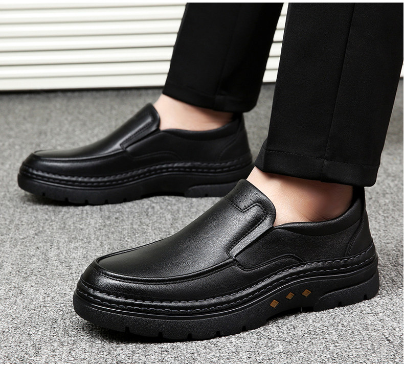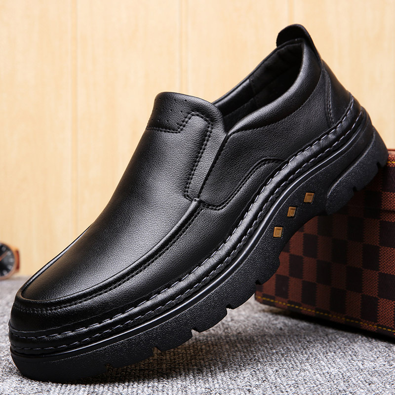 가죽 신발 남성용 봄과 가을 2023 새로운 정품 가죽 모든 매치 통기성 미끄럼 방지 가죽 신발 캐주얼 트렌디 슬립온 남성 신발스토어 가기