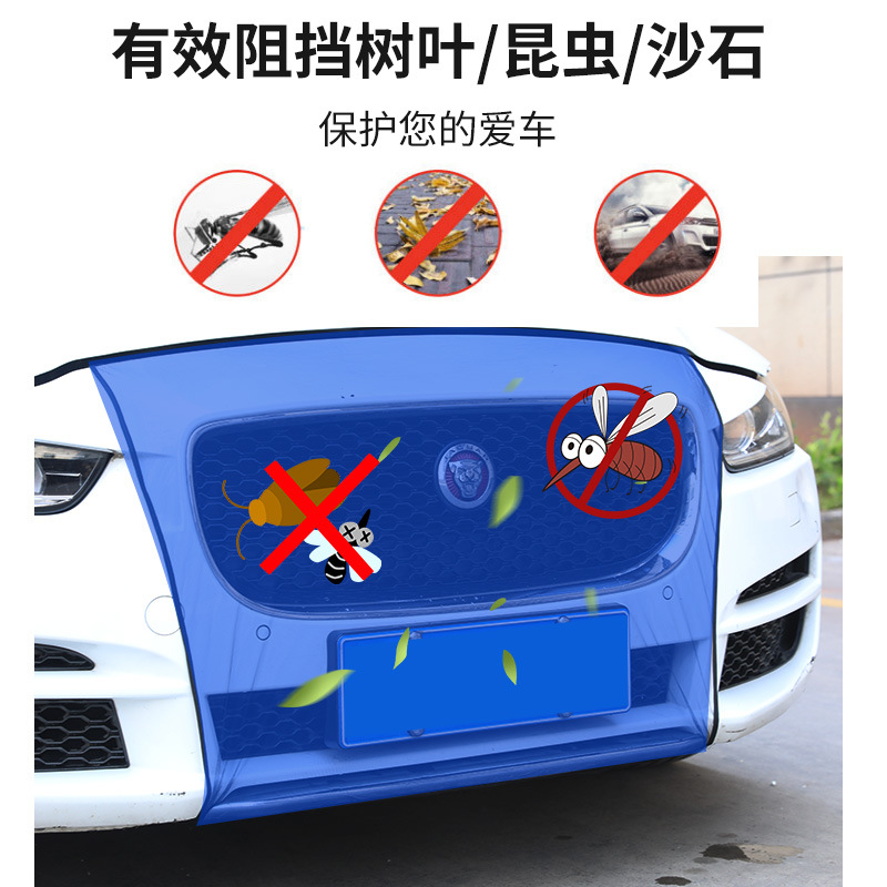 【安装方法】:打开汽车前盖,给产品安装好钩子,用钩子挂好汽车左右侧口,然后把下面的钩子挂入车下方的洞,然后整理一下关好车前盖,用剪刀把车牌前面的产品剪去。