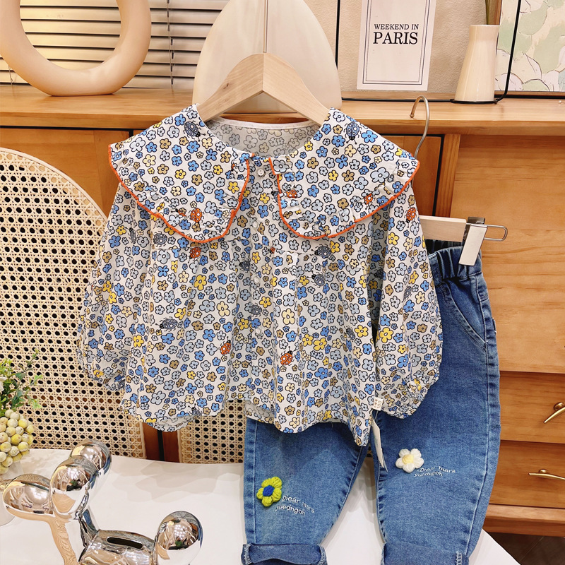 여자 셔츠 아기 긴 소매 2025 봄 어린이 꽃 셔츠 여자 탑 아기 새 공주 셔츠