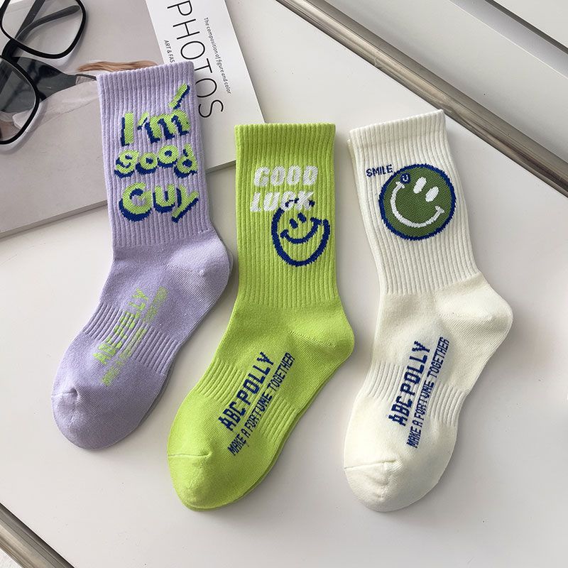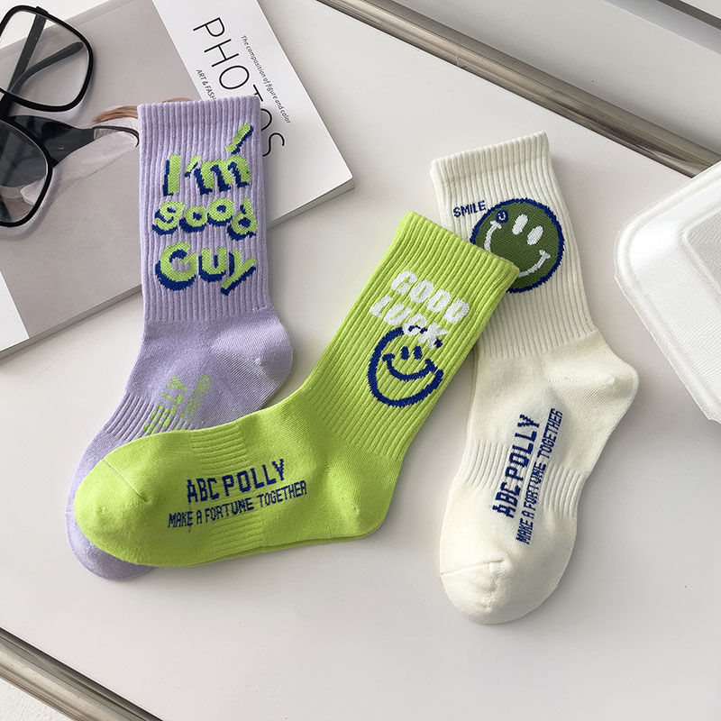 일본 스포츠 미드 배럴 개인화 된 웃는 얼굴 트렌디 스트리트 패션 남성 양말 여성 양말 트렌디 한 모든 경기 스포츠 양말스토어 가기