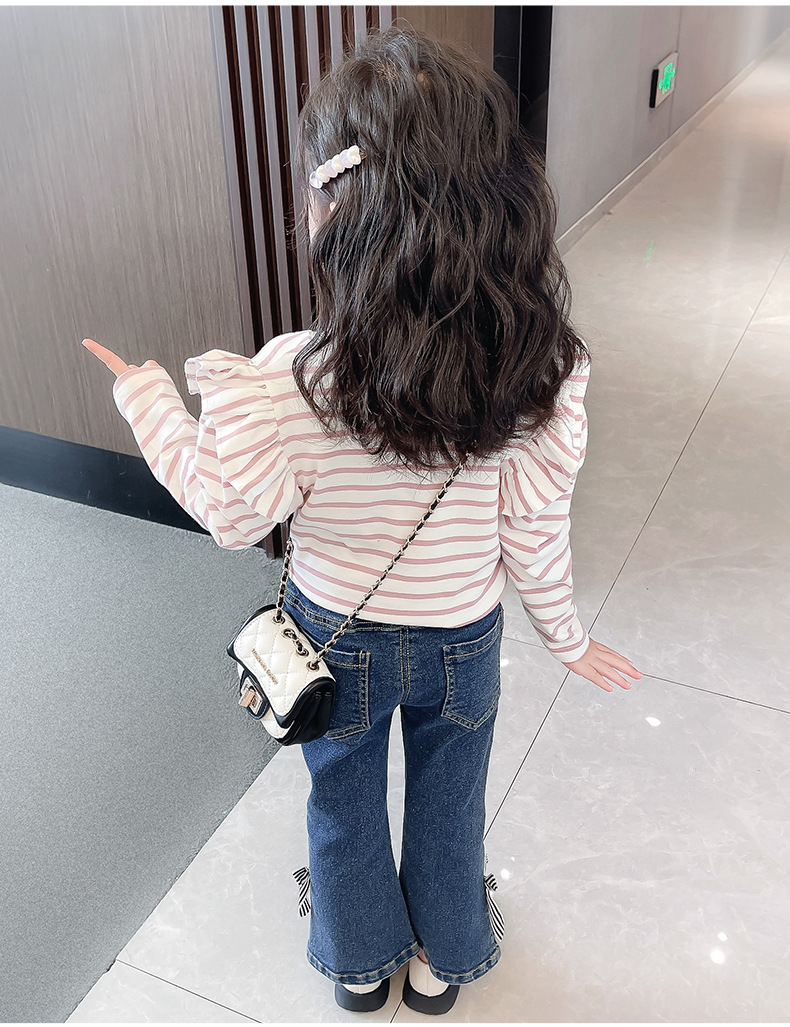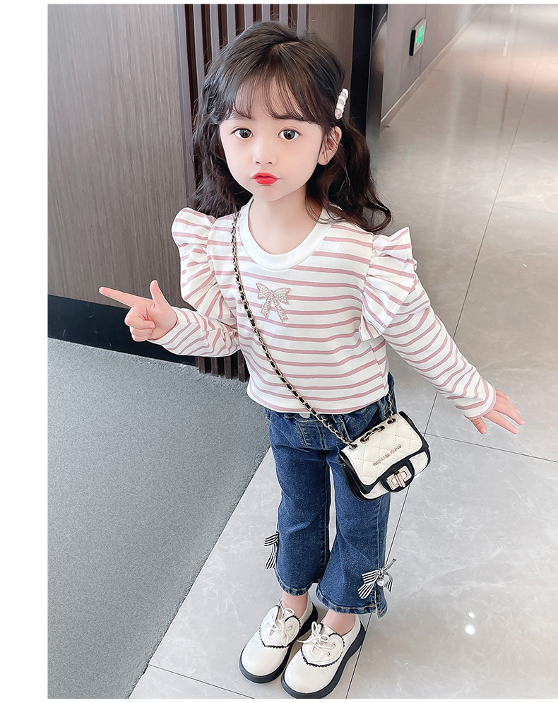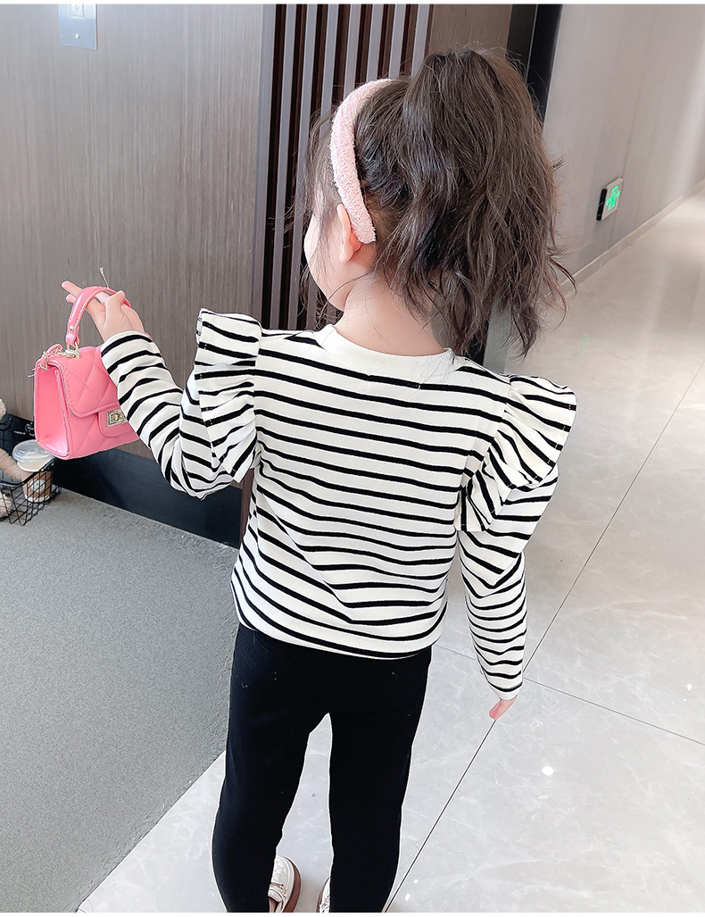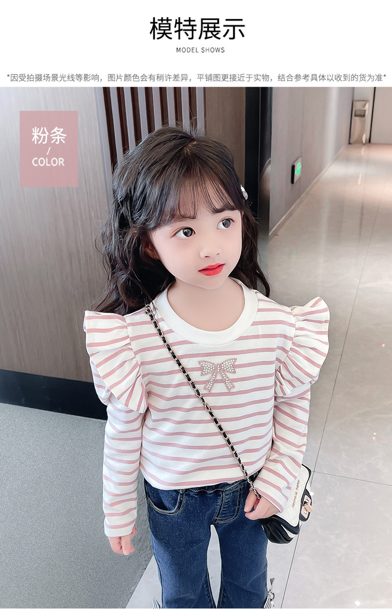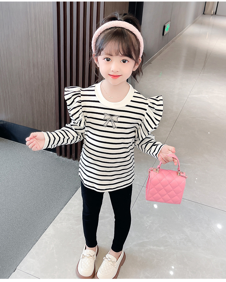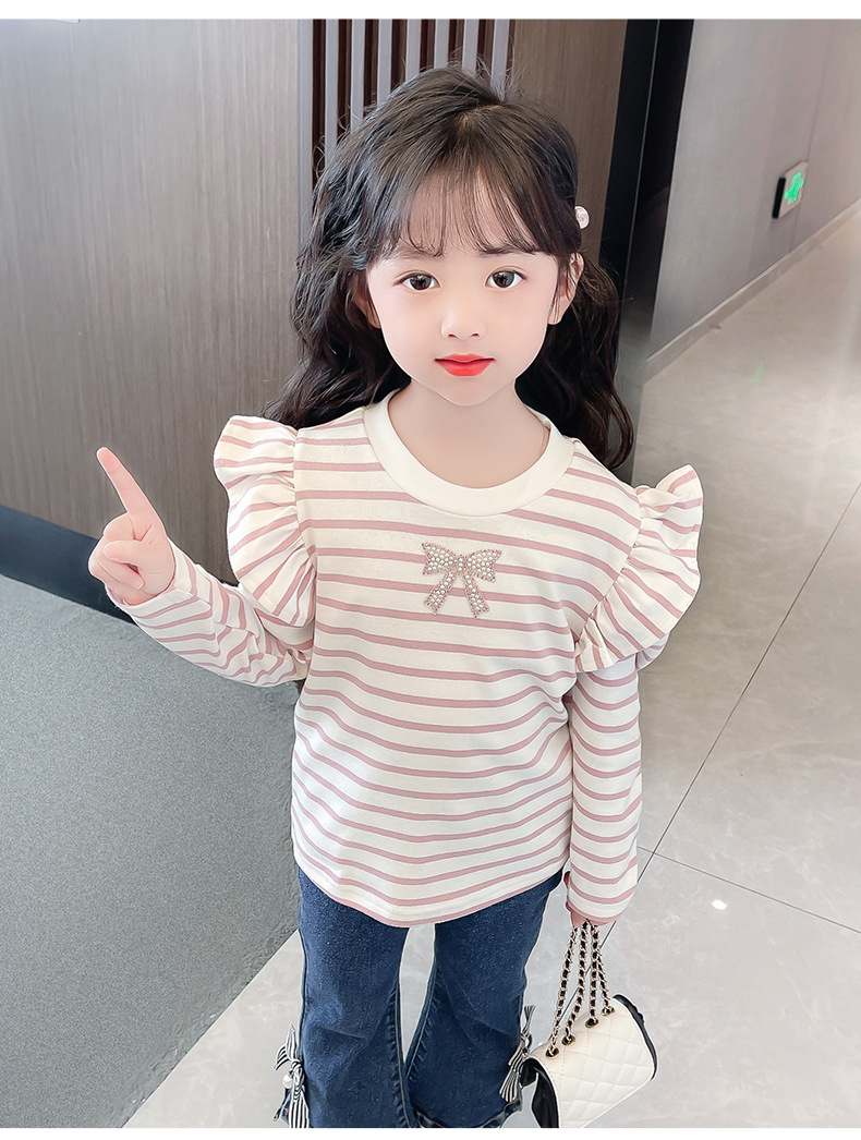 여아 의류 2025년 신상 봄옷 스트라이프 셔츠 이너웨어 플라잉 슬리브 나비 풀오버 면 긴팔 티셔츠