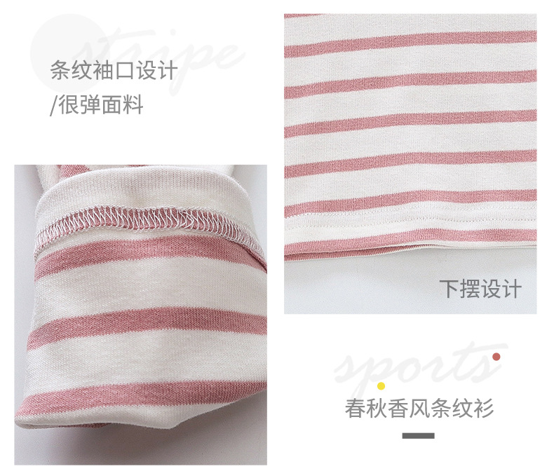 여아 의류 2025년 신상 봄옷 스트라이프 셔츠 이너웨어 플라잉 슬리브 나비 풀오버 면 긴팔 티셔츠스토어 가기