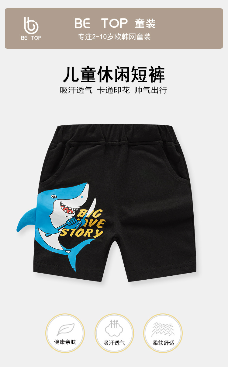 남아 반바지 여름 서양식 캐주얼 바지 어린이 바지 아기의 여름 한국 스타일 여름 착용 만화 상어 아동복스토어 가기
