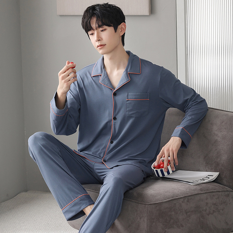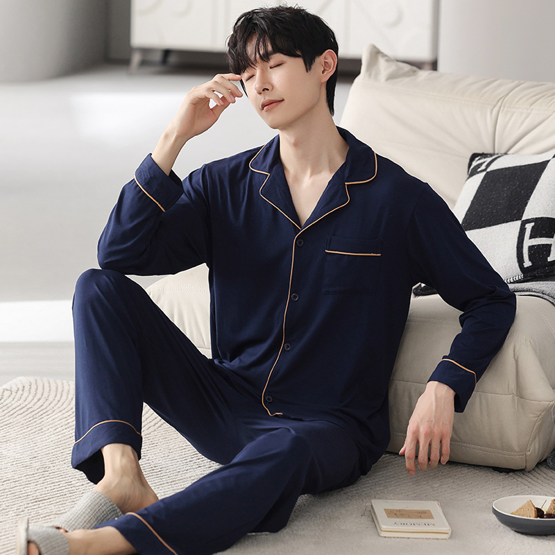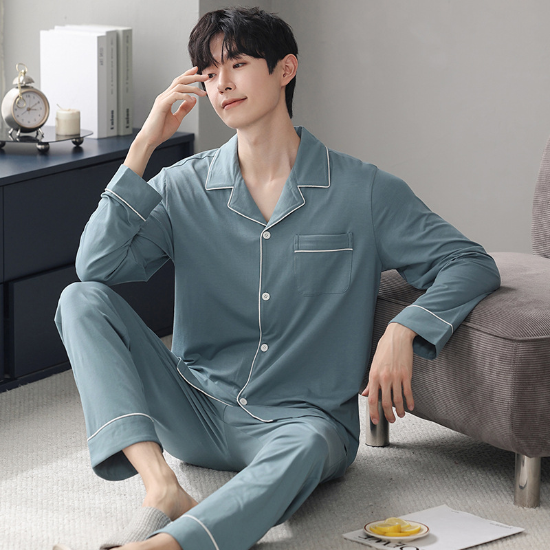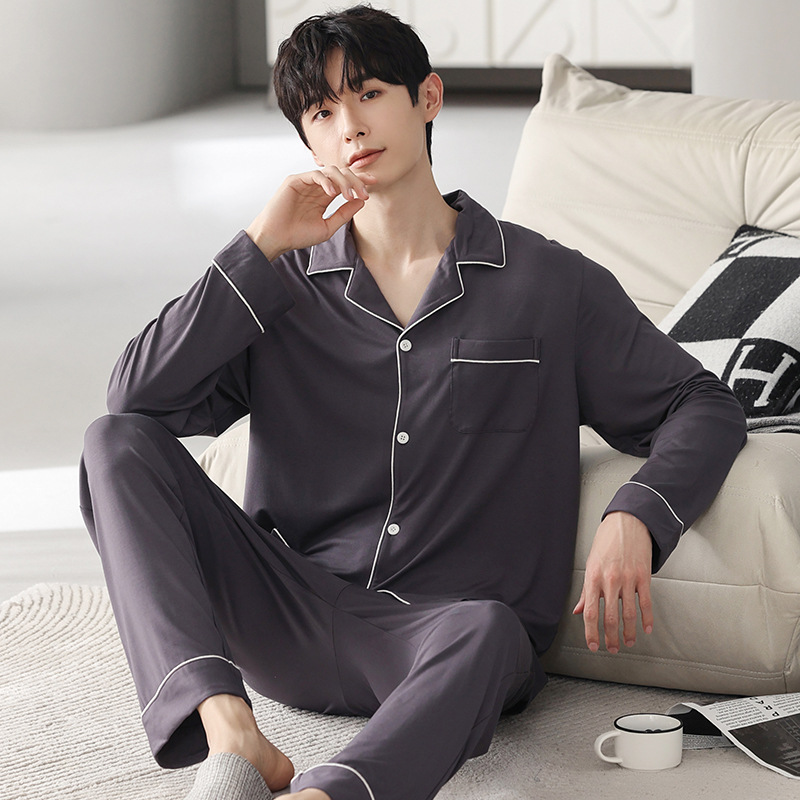 단색 모달 남자의 가정 옷 봄과 가을 느슨한 긴 소매 잠옷 캐주얼 200kg 플러스 사이즈 가정 옷 남자스토어 가기