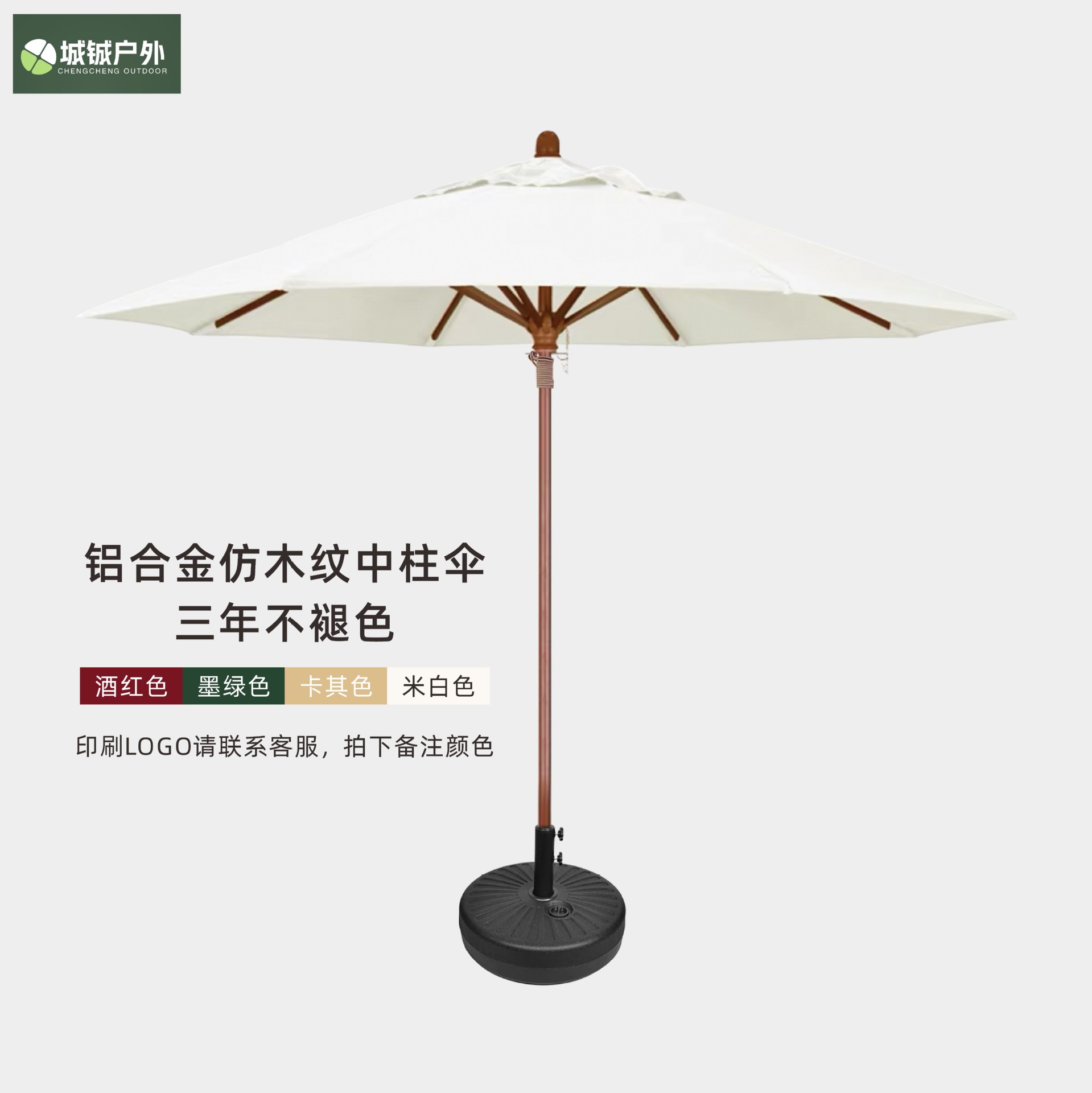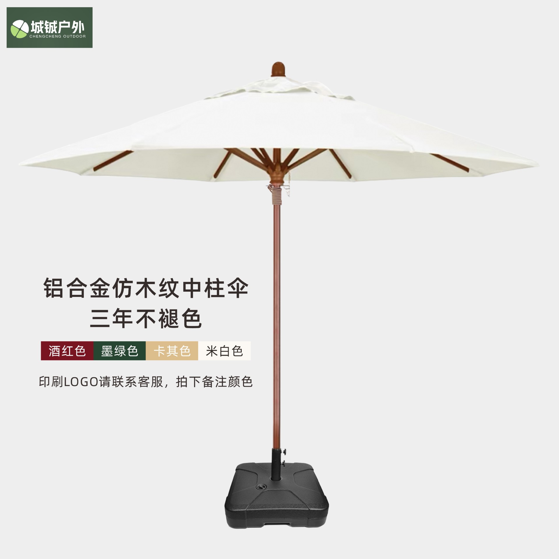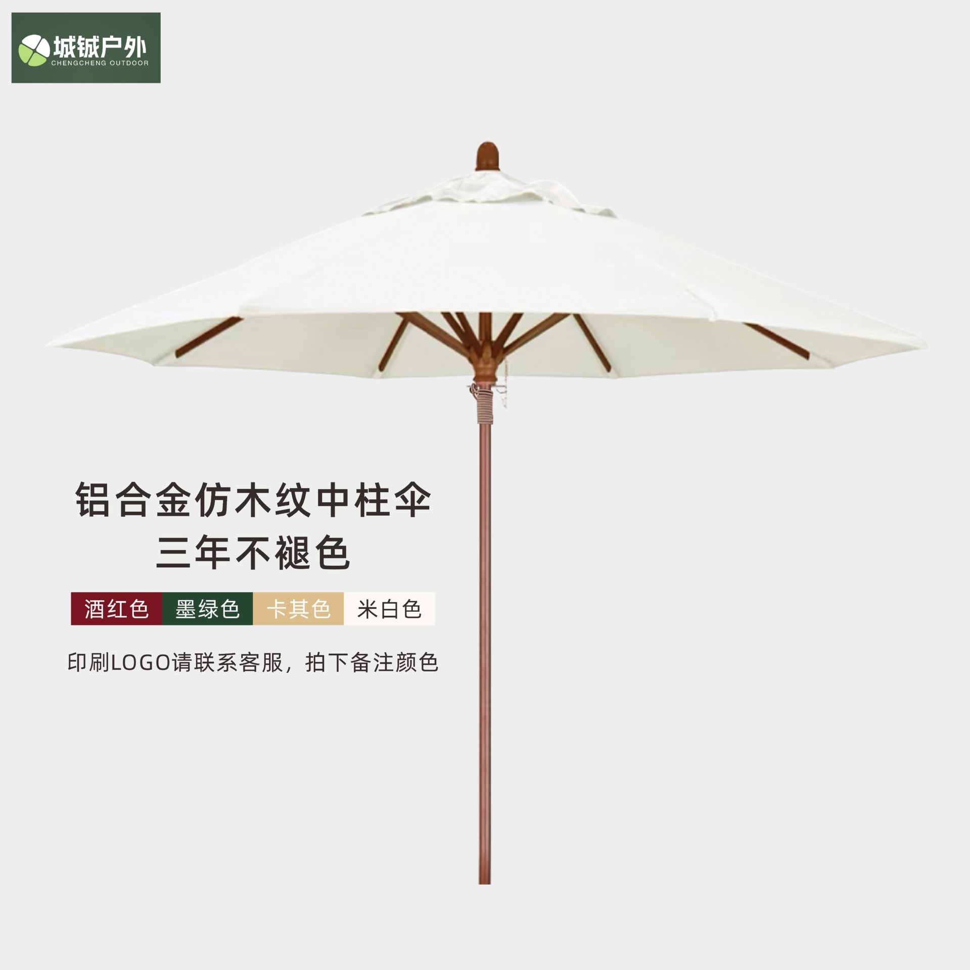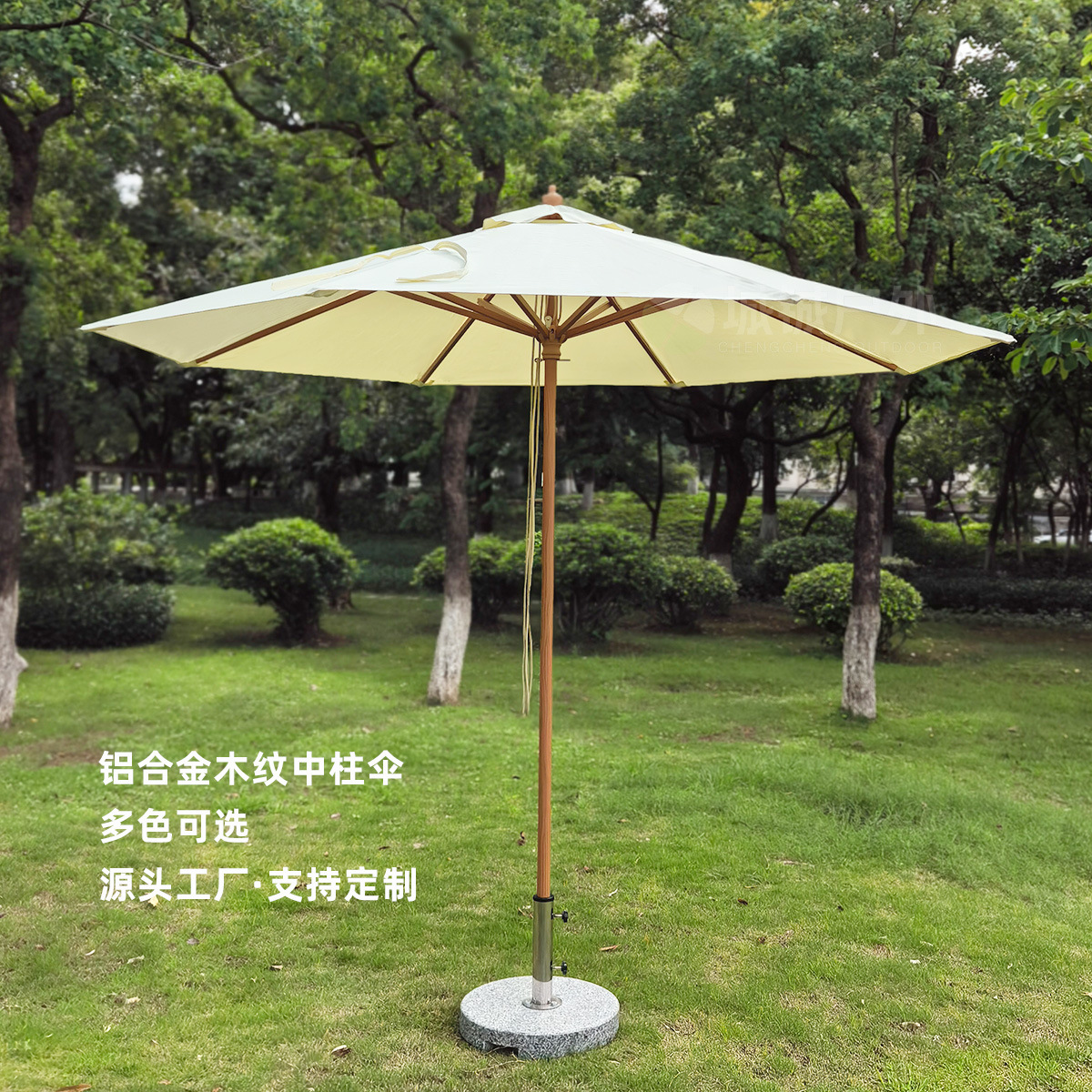 제조업체 맞춤형 알루미늄 합금 나뭇결 정원 밀크티 커피 숍 해변 8본 방풍 원사 염색 직물 중간 기둥 파라솔