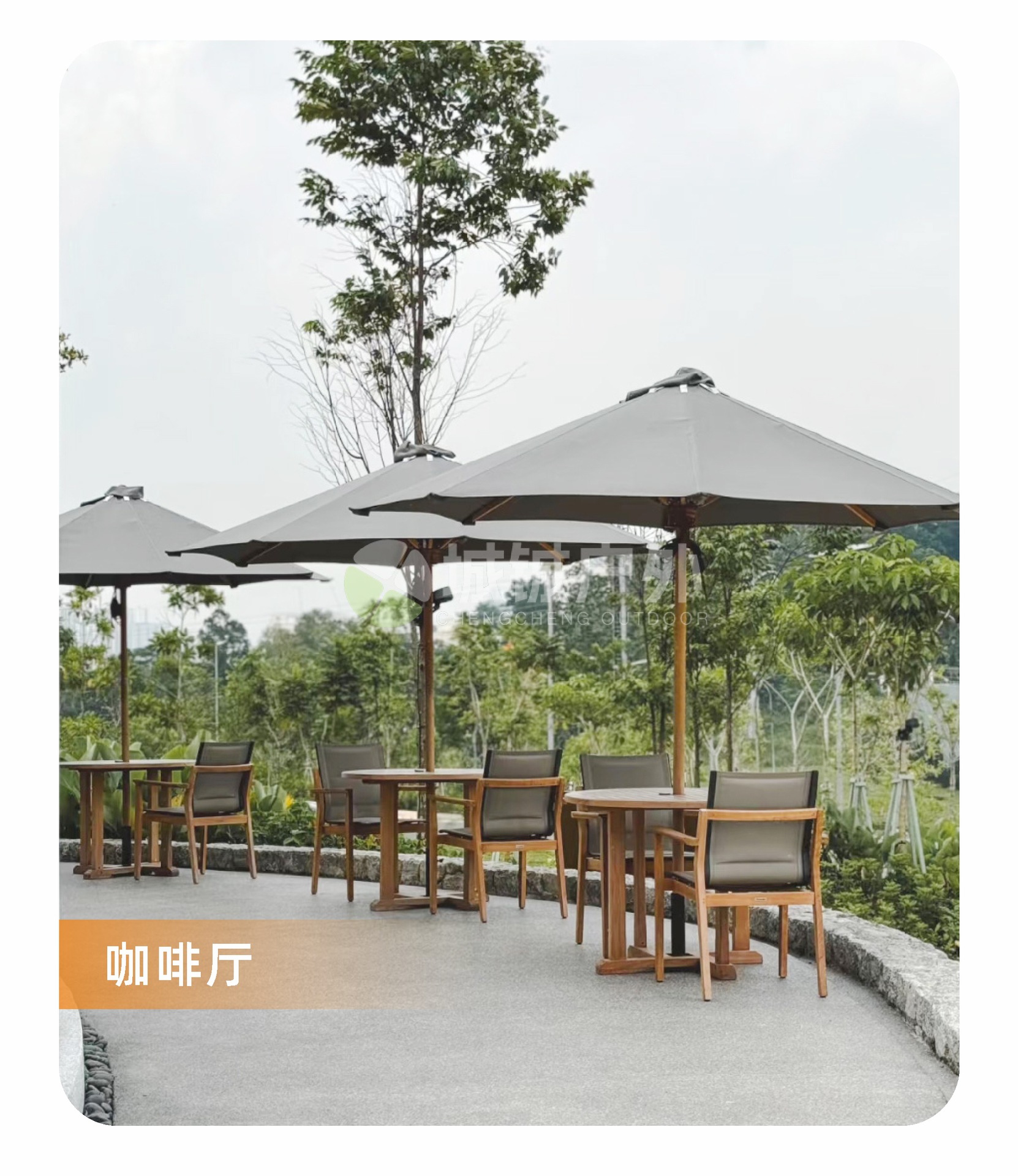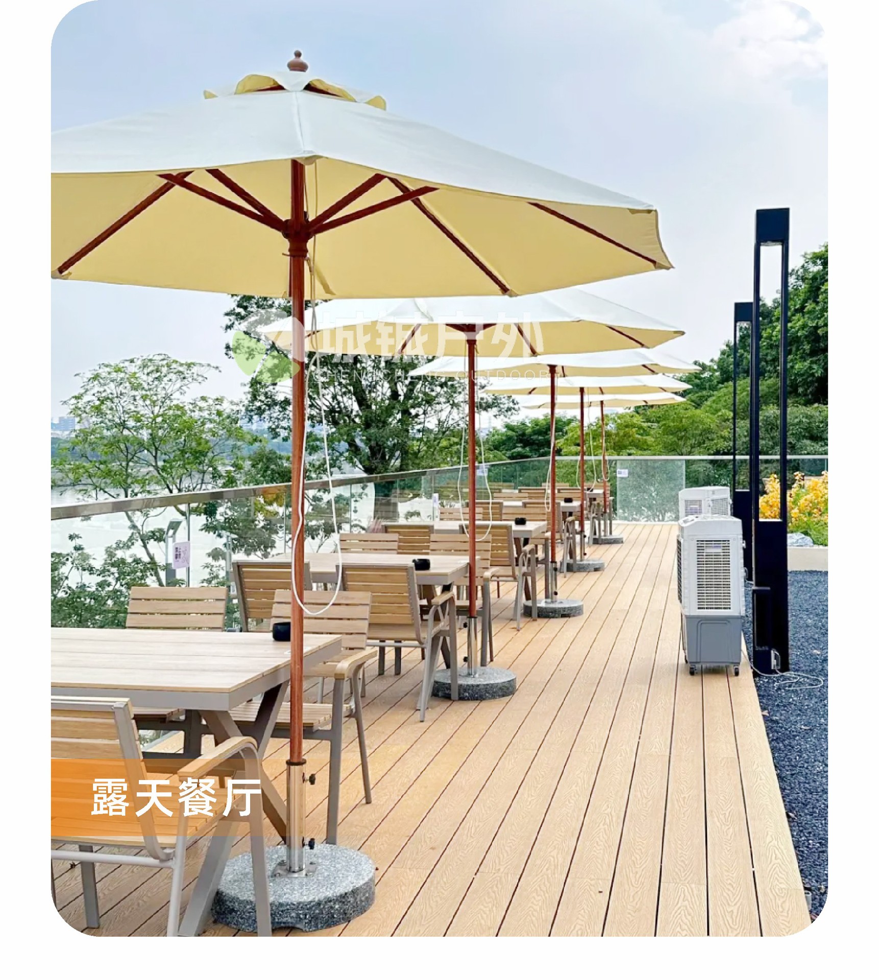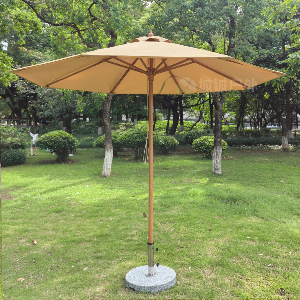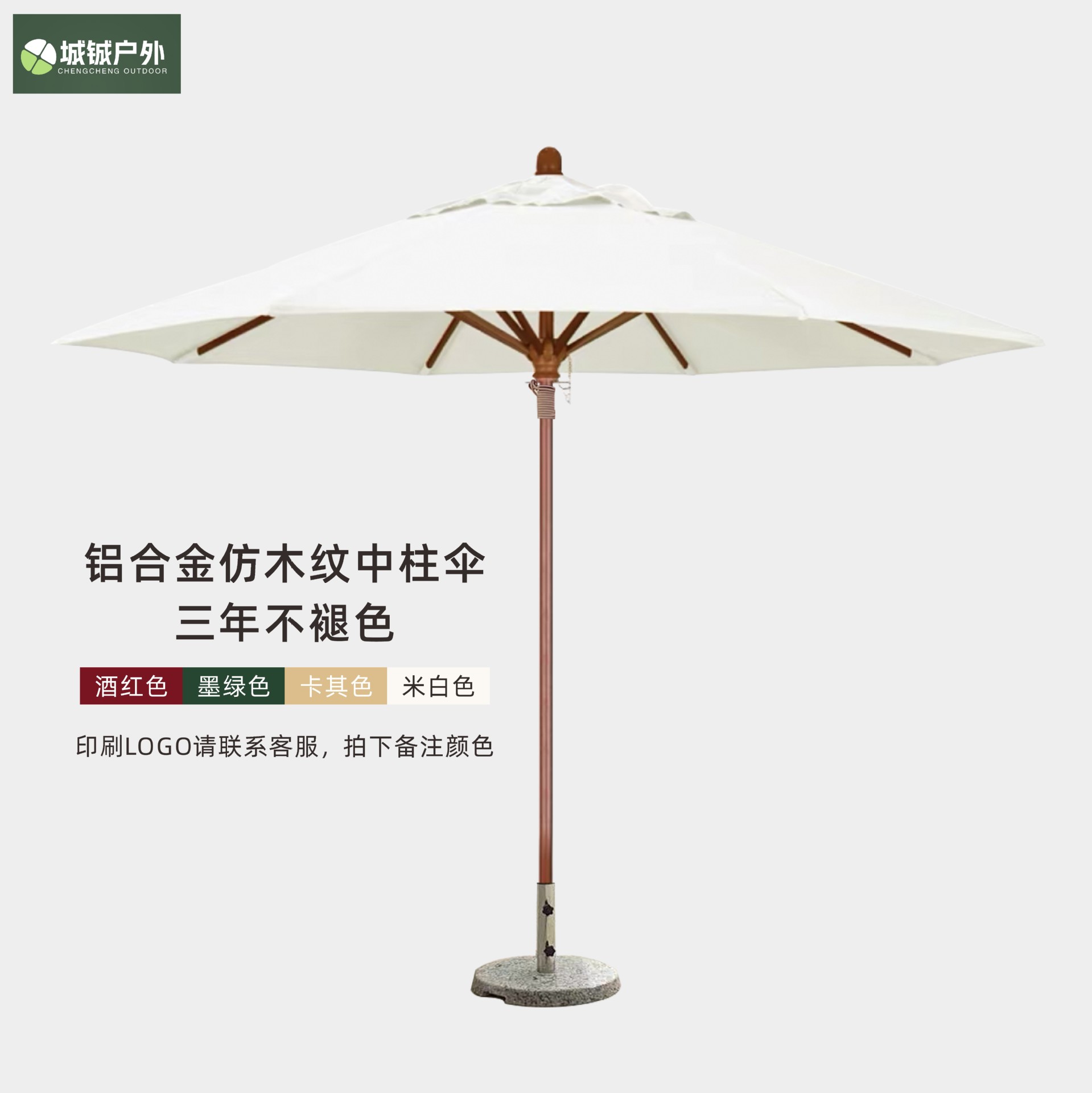제조업체 맞춤형 알루미늄 합금 나뭇결 정원 밀크티 커피 숍 해변 8본 방풍 원사 염색 직물 중간 기둥 파라솔