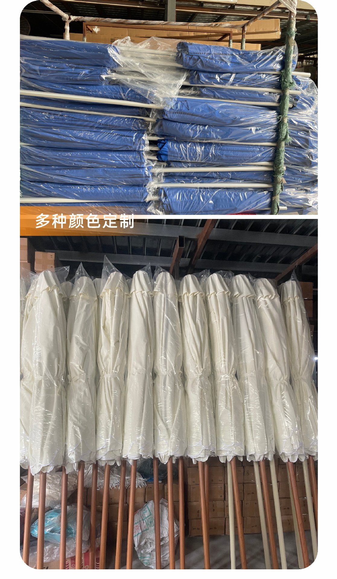 제조업체 맞춤형 알루미늄 합금 나뭇결 정원 밀크티 커피 숍 해변 8본 방풍 원사 염색 직물 중간 기둥 파라솔스토어 가기