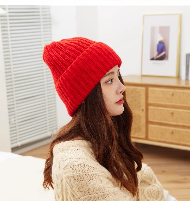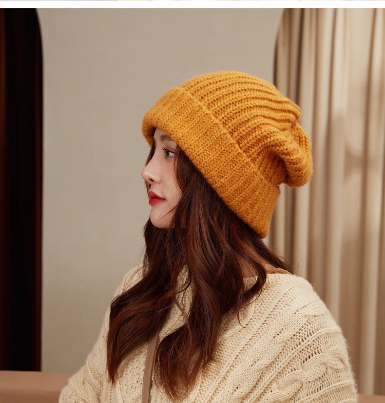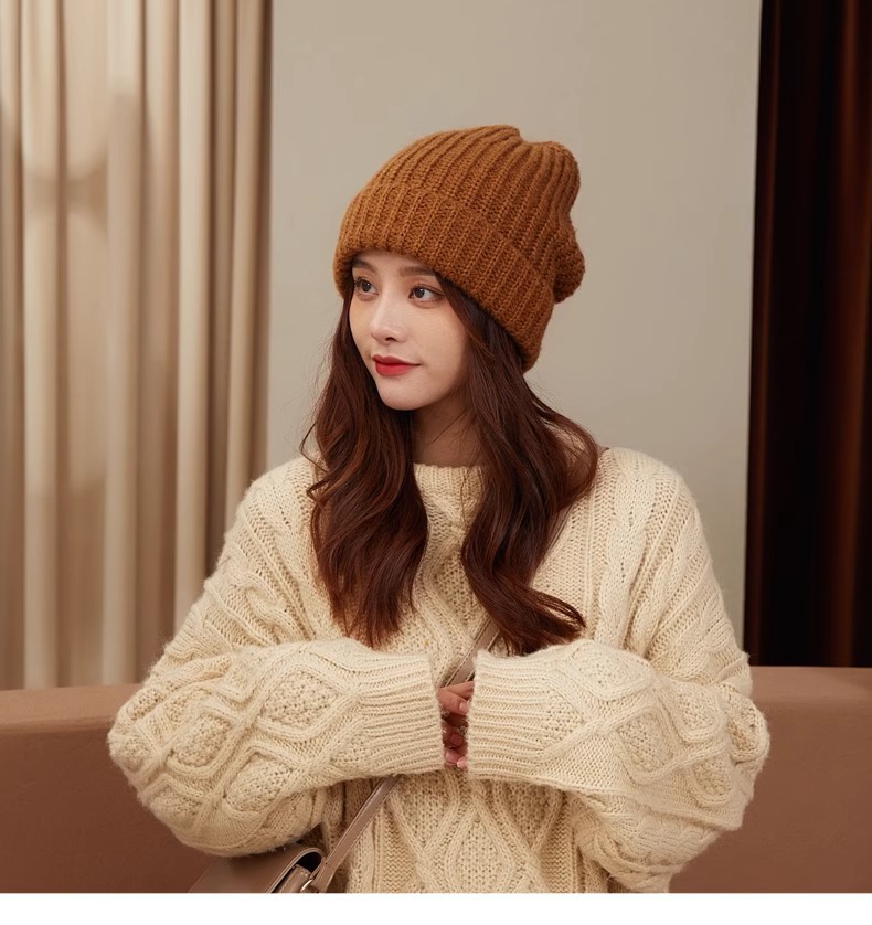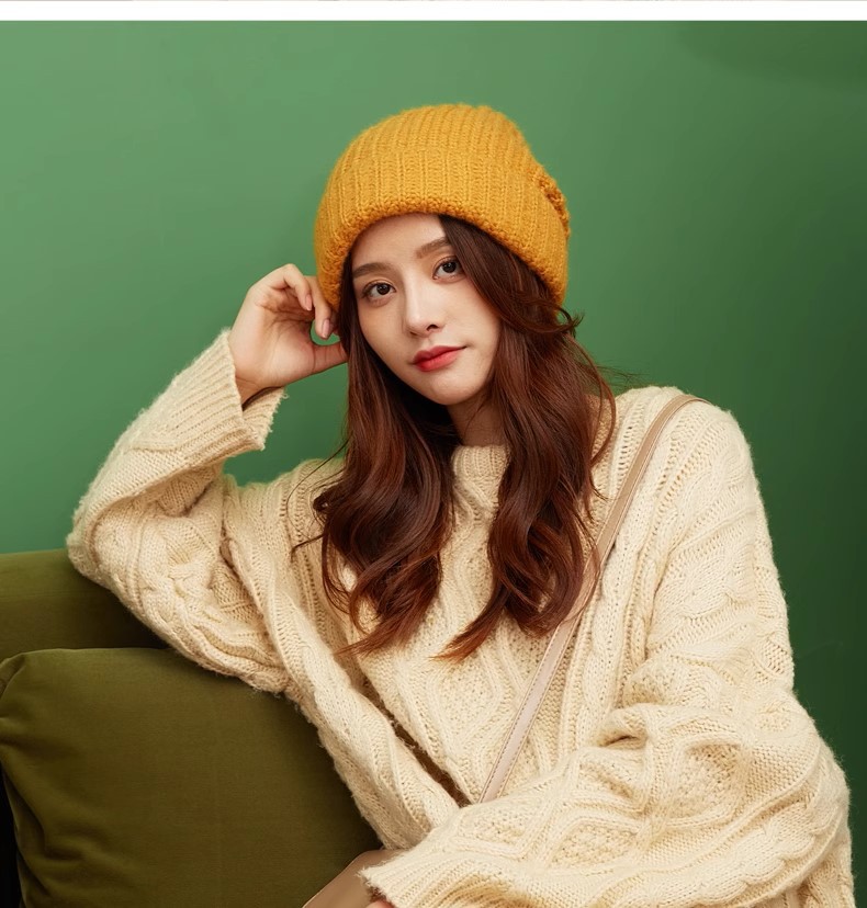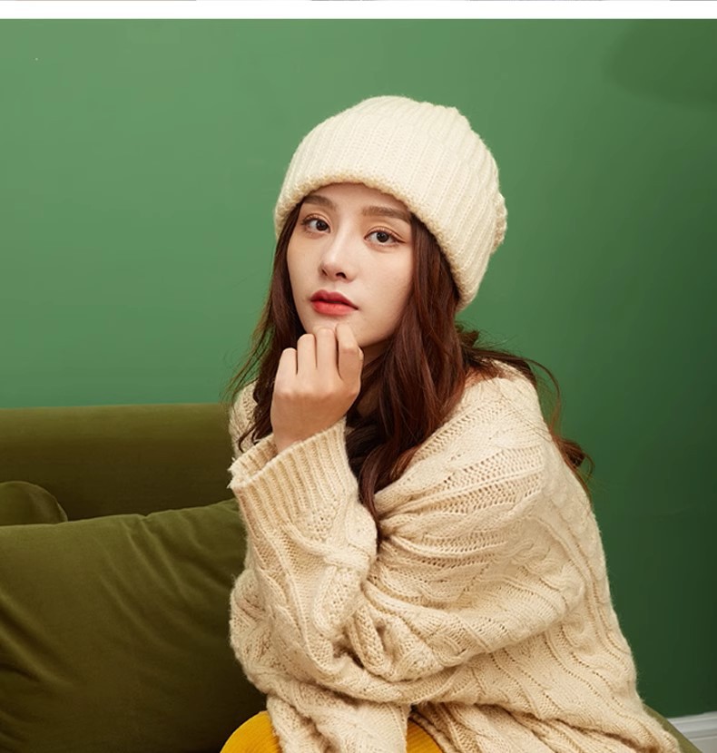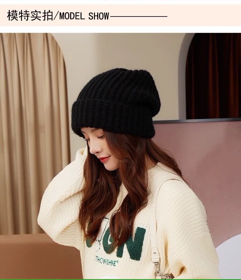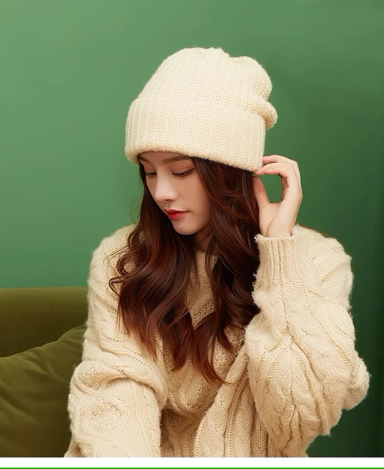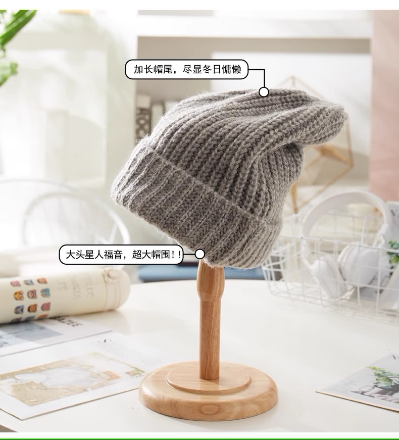 차가운 모자 큰 머리 둘레 거친 울 모자 여성의 봄 올매치 따뜻한 느슨한 얼굴 작은 귀 보호 니트 모자 조수스토어 가기