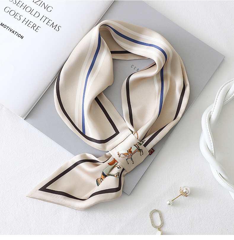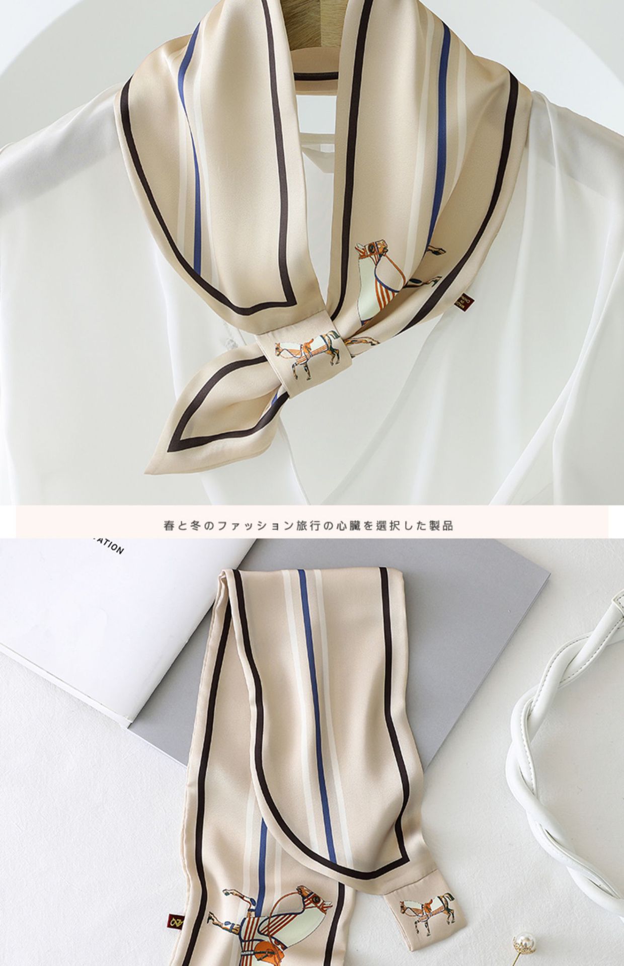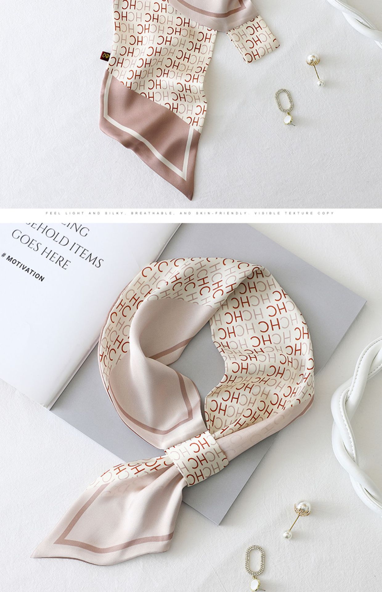 실크 스카프 작은 롱 스퀘어 스카프 여성용 봄과 가을과 여름 목 보호 리본 스카프 셔츠 장식 얇은 스카프 게으른 사람들을위한스토어 가기