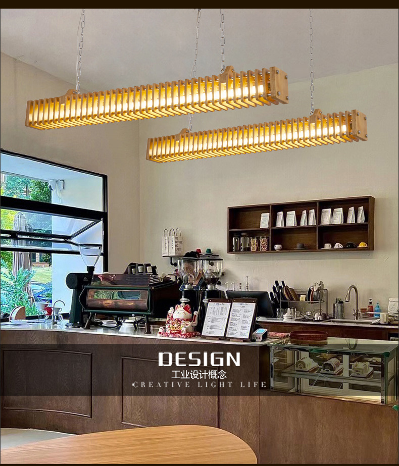 산업 스타일 LED 스트립 레스토랑 출납원 바 커피 숍 식탁 사무실 티 룸 복고풍 단단한 나무 일본 샹들리에