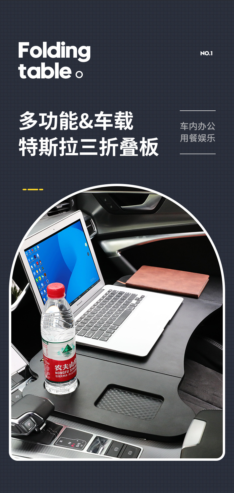 자동차 특수 식탁 작은 테이블 접이식 컴퓨터 책상 사무실 자동차 어린이 쓰기 Tesla 메인 및 보조 운전 테이블 + 가방스토어 가기
