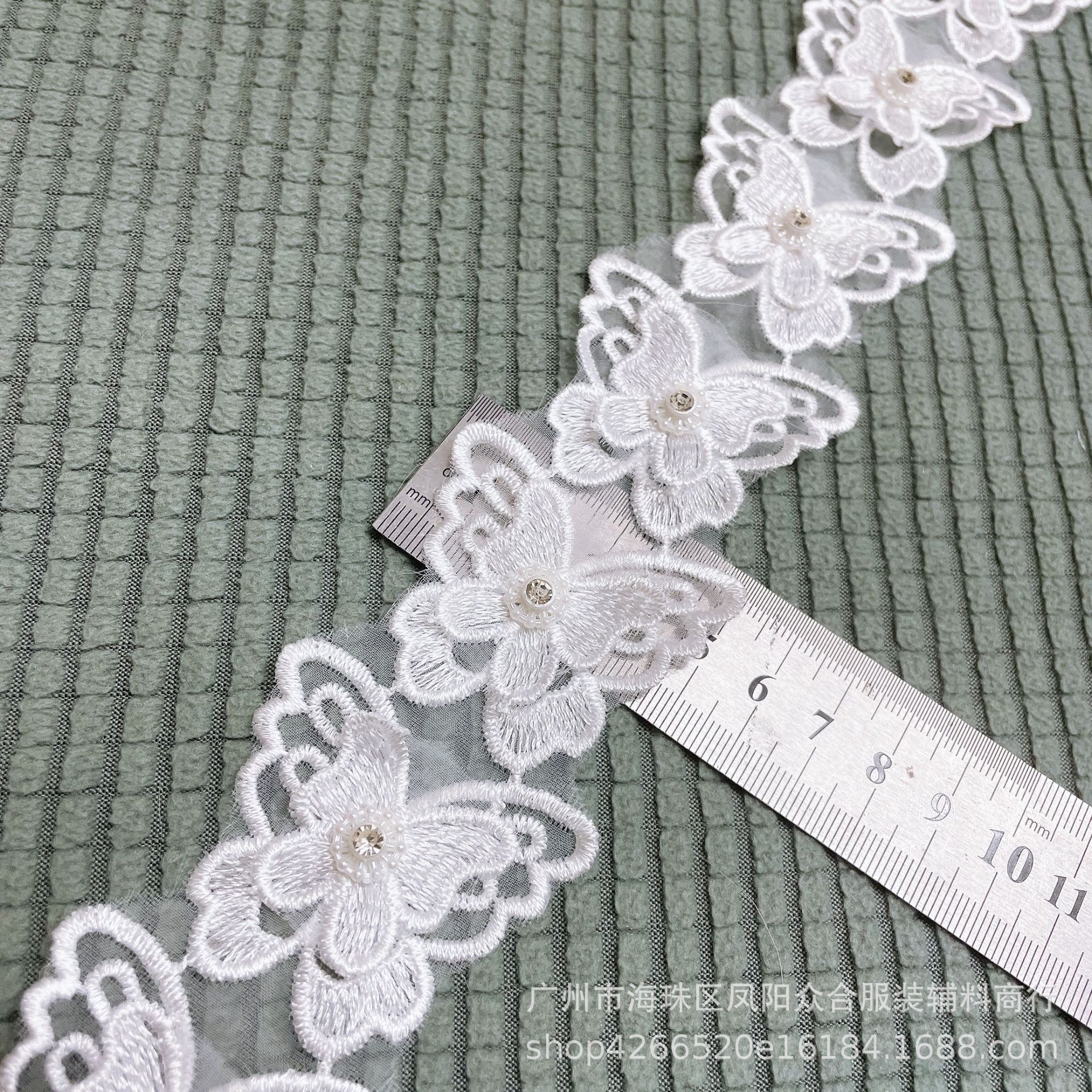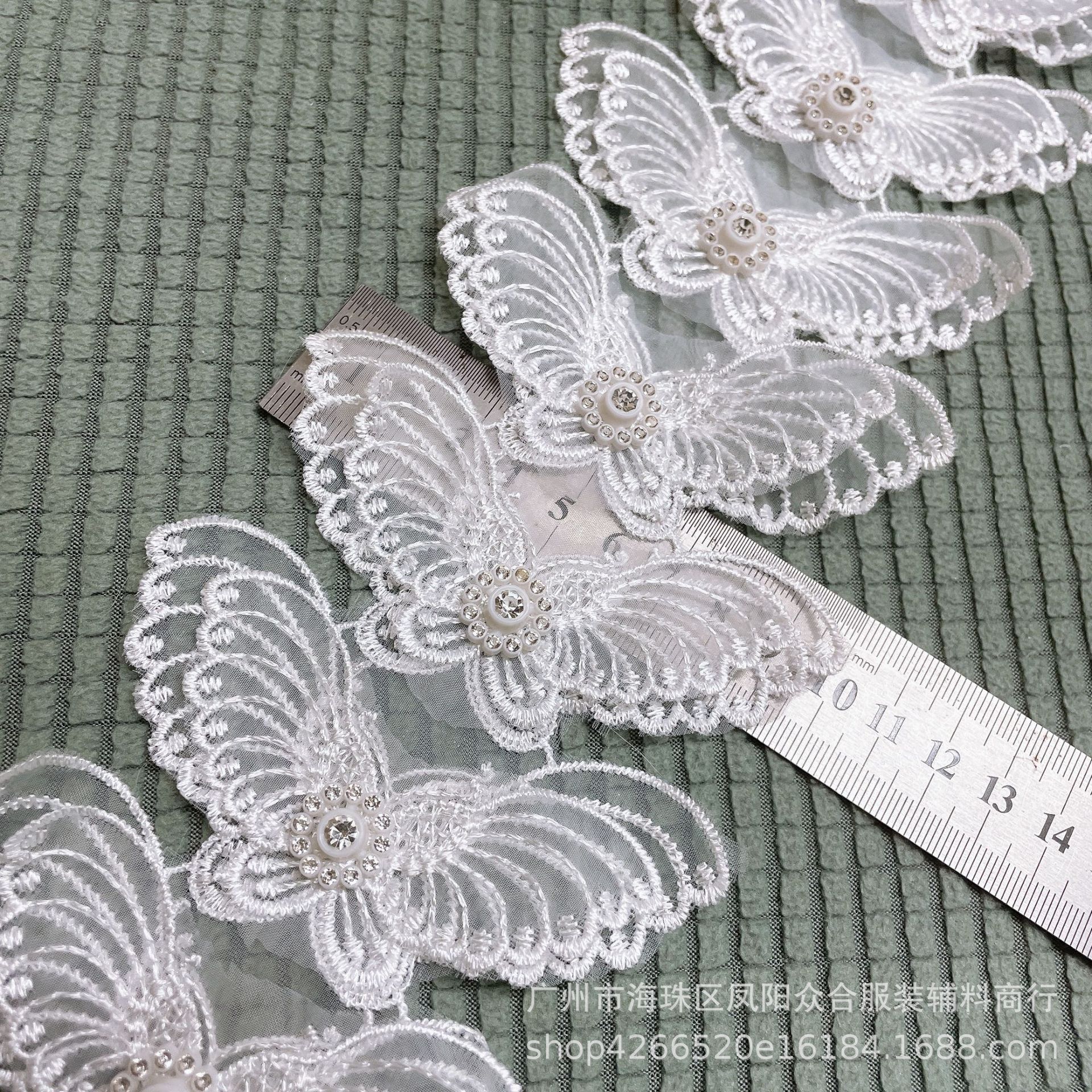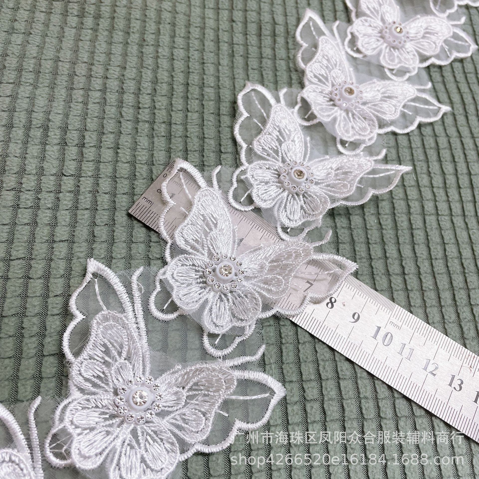구슬 자수 organza 3 차원 더블 나비 꽃 레이스 액세서리 웨딩 원피스 수제 DIY 액세서리