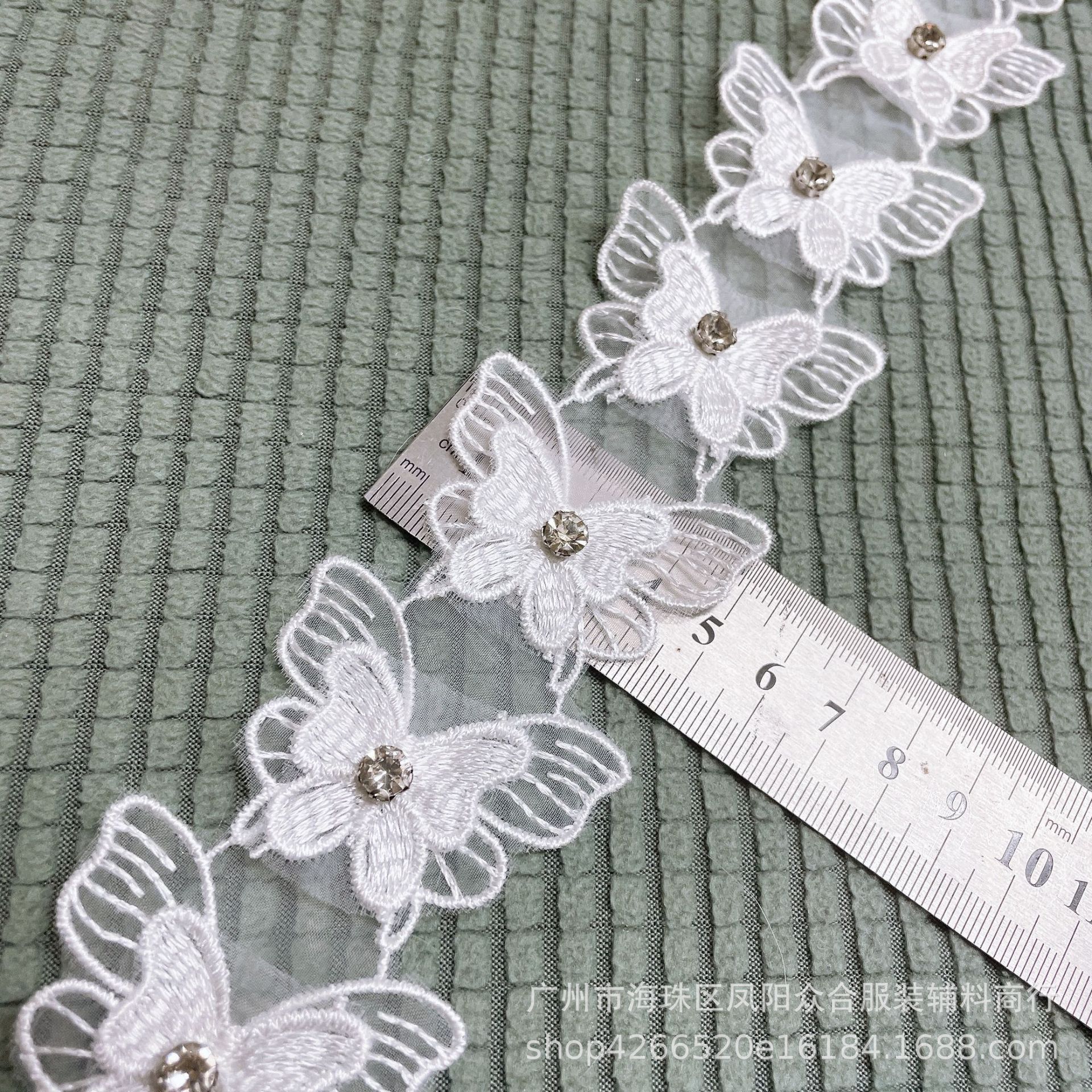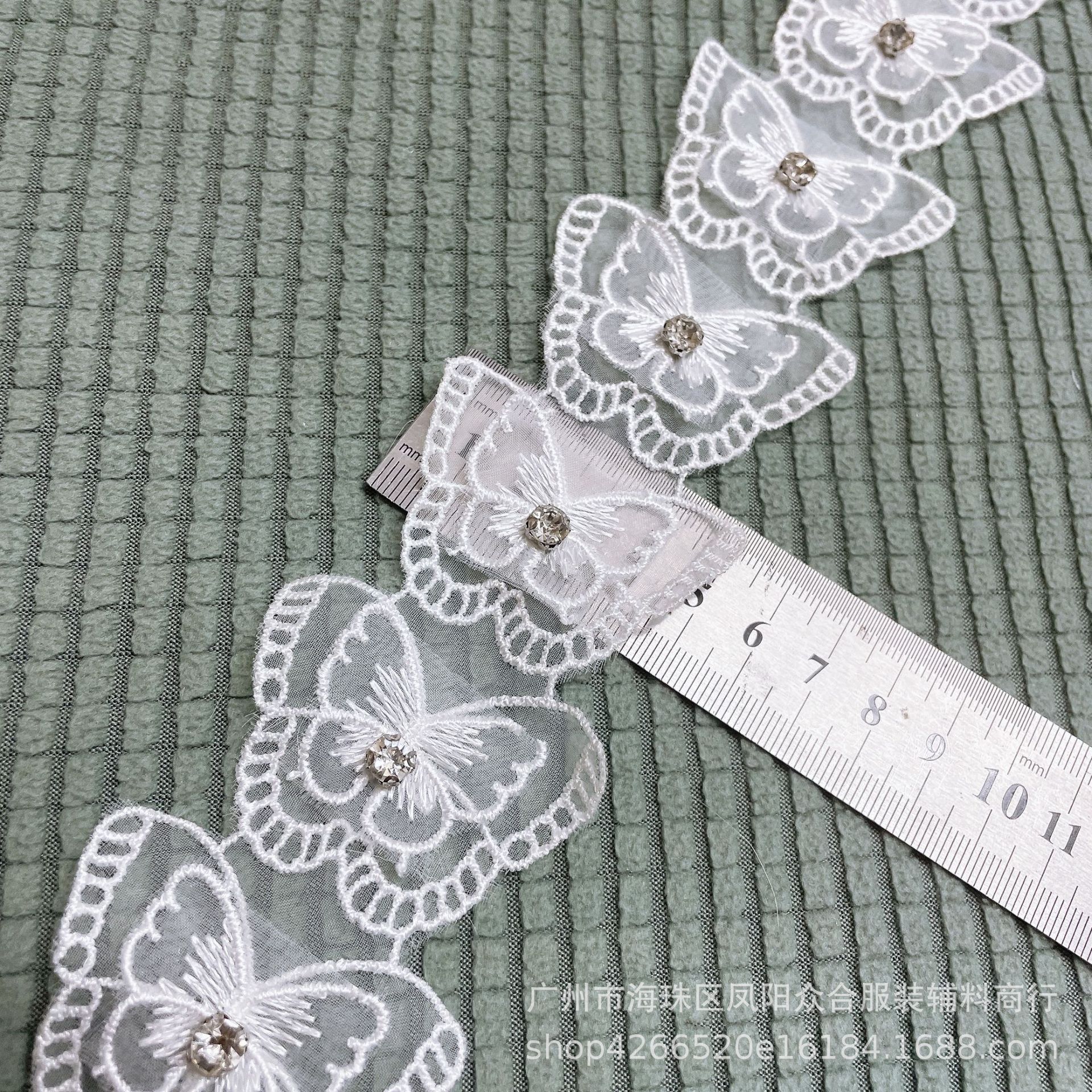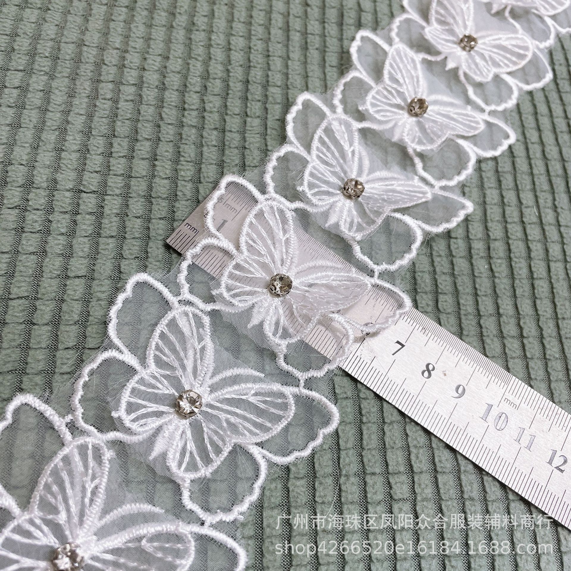 구슬 자수 organza 3 차원 더블 나비 꽃 레이스 액세서리 웨딩 원피스 수제 DIY 액세서리