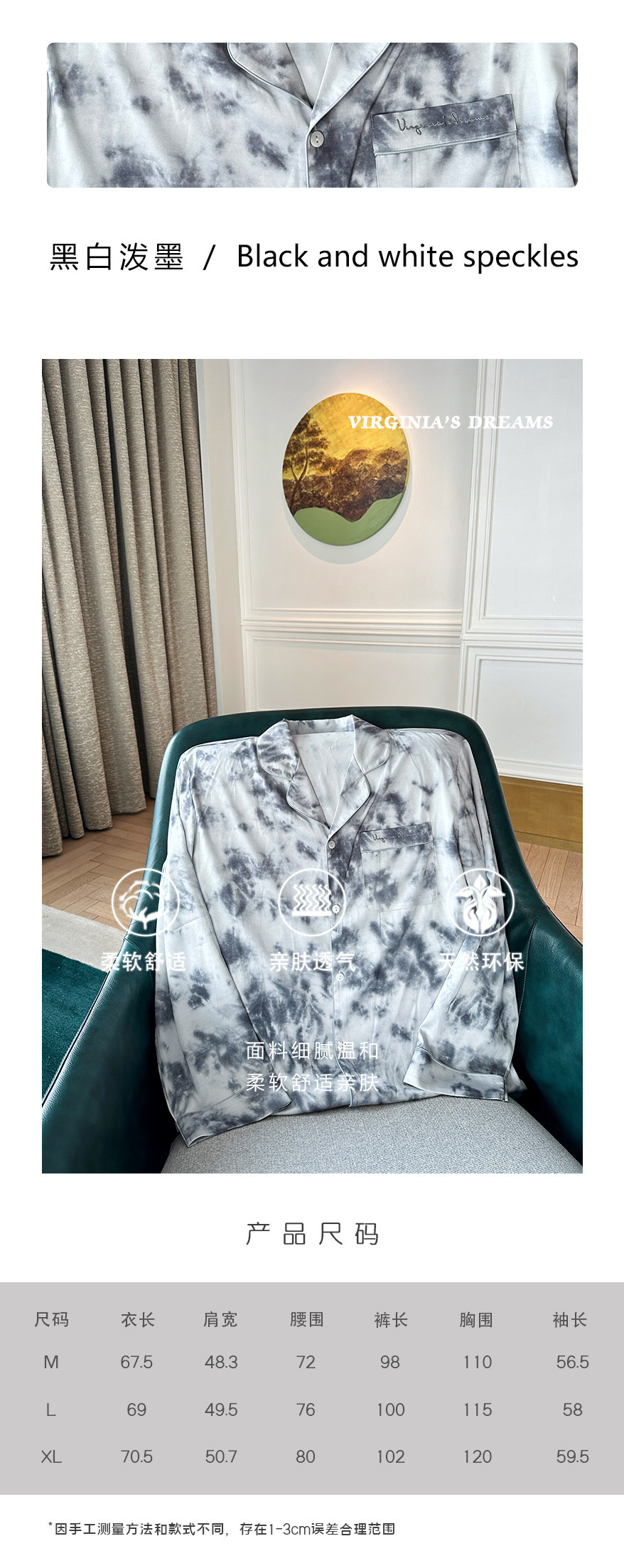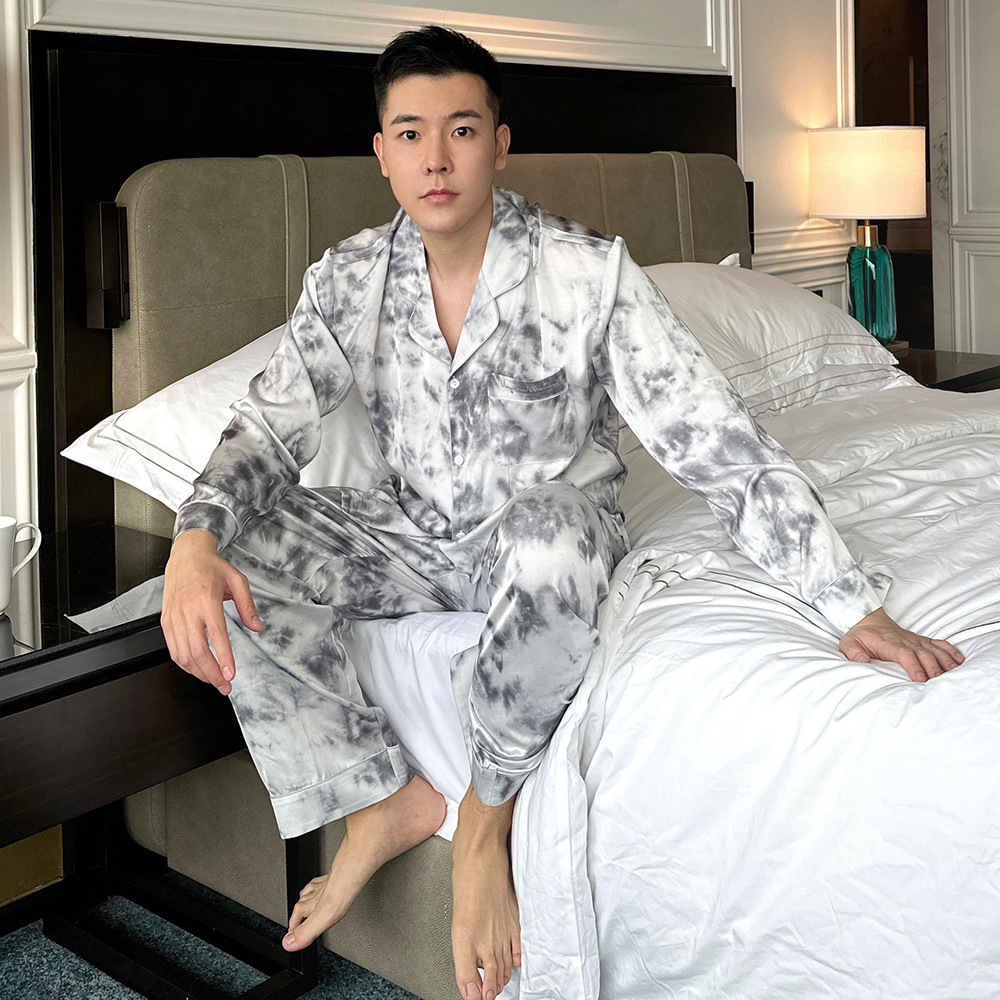 2023 새로운 남자의 아이스 실크 긴 소매 바지 잠옷 스플래시 잉크 인쇄 실크 새틴 부티크 가정 옷 세트