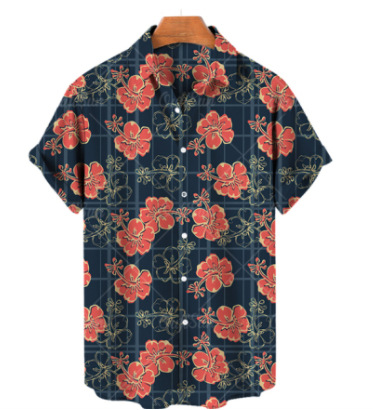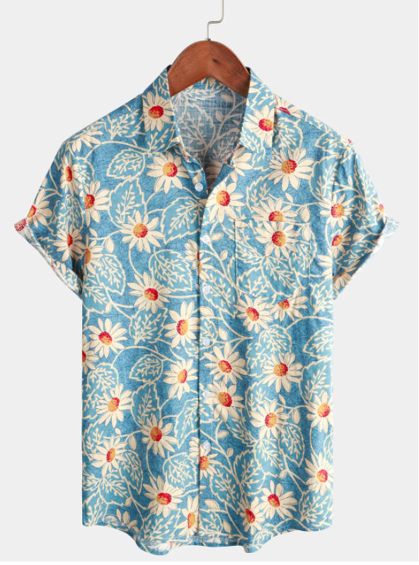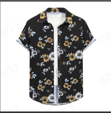대외 무역 2023 여름 새로운 남자의 반소매 가디건 남자의 하와이안 셔츠 3D 디지털 인쇄 해바라기 셔츠