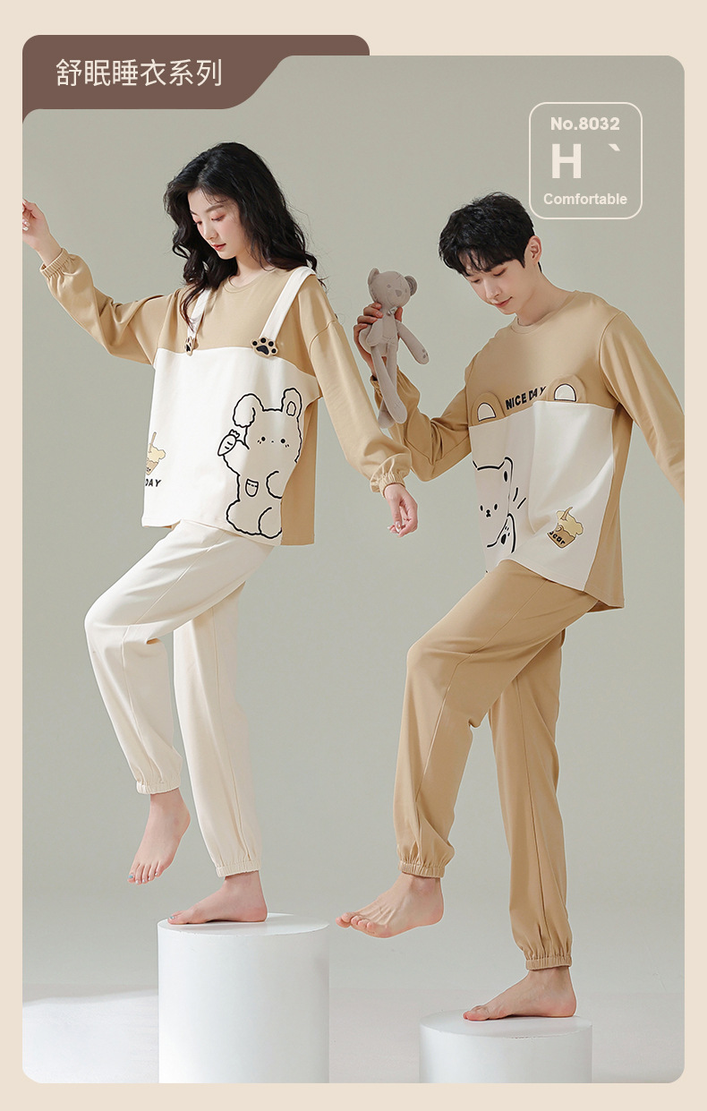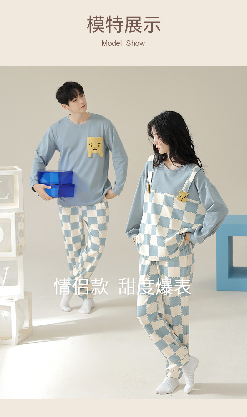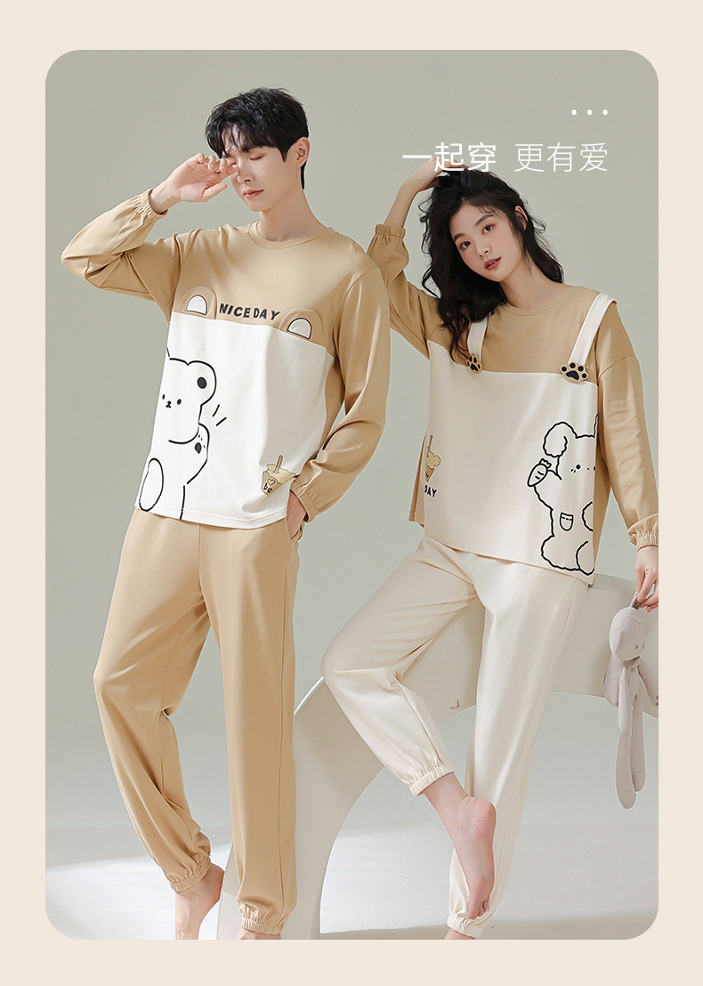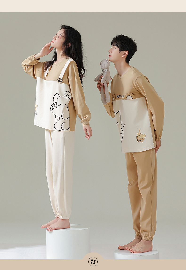 커플 잠옷 여자의 봄과 가을 면 긴 소매 귀여운 사이버 연예인 곰 겉옷 남자의 가을과 겨울 가정 옷 세트스토어 가기