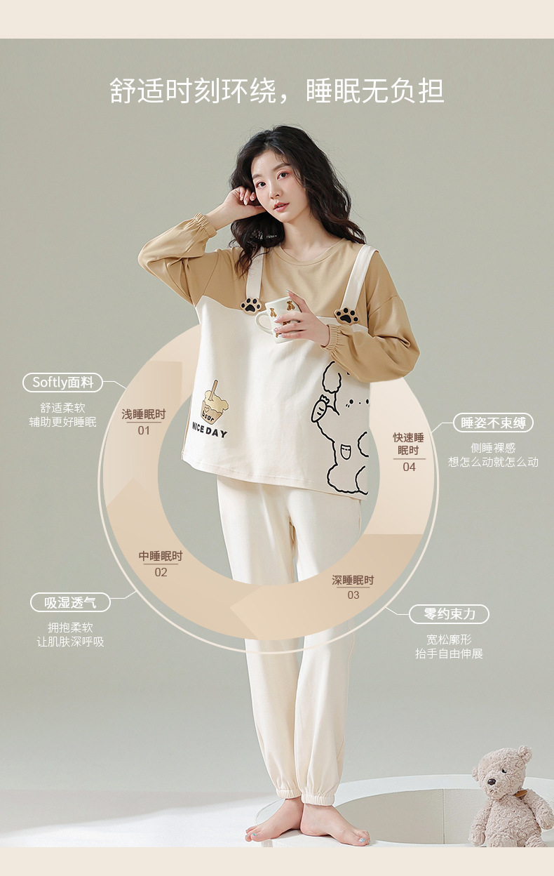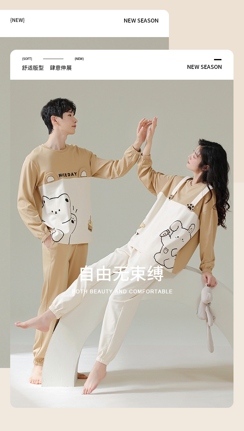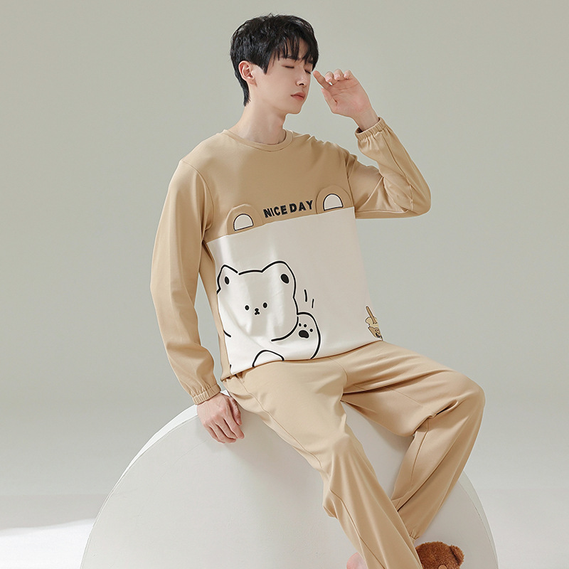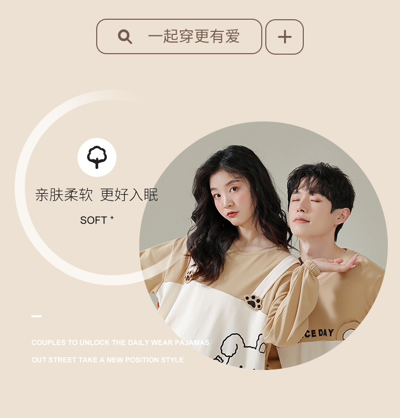 커플 잠옷 여자의 봄과 가을 면 긴 소매 귀여운 사이버 연예인 곰 겉옷 남자의 가을과 겨울 가정 옷 세트스토어 가기