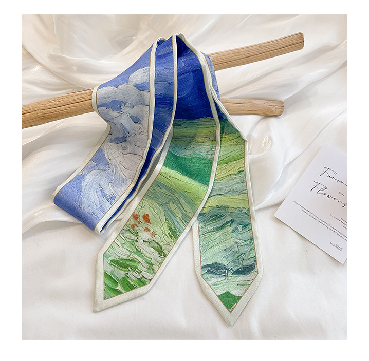 뾰족한 각도 유화 인쇄 봄과 여름 리본 긴 실크 스카프 여자의 좁은 한국 다기능 모든 일치 장식 리본 작은 넥타이스토어 가기