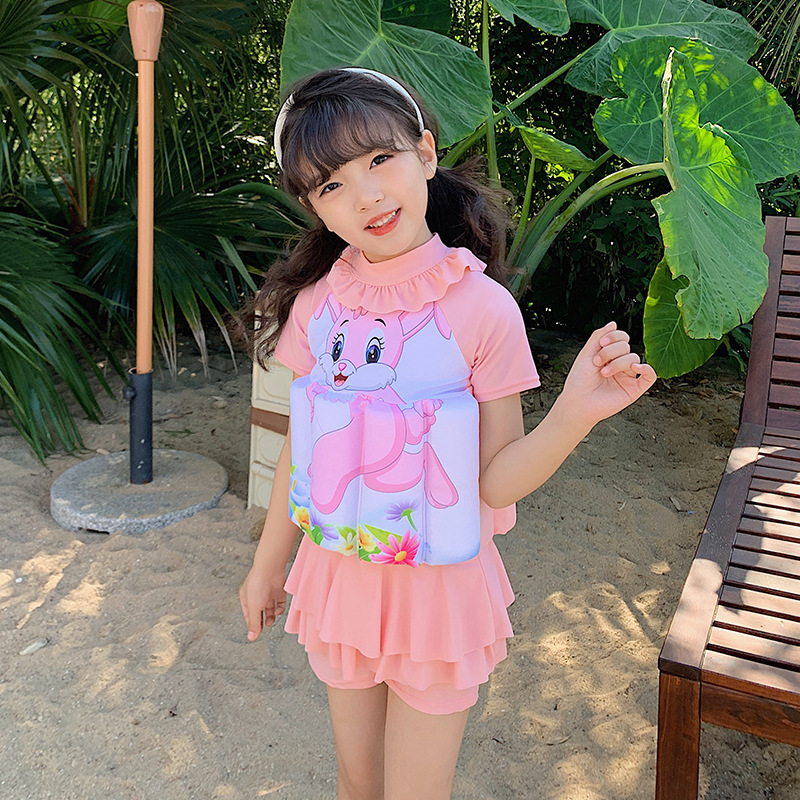 새로운 어린이 부력 수영복 아기 유아 소년 소녀 아기 짧은 소매 스커트 플로팅 수영복