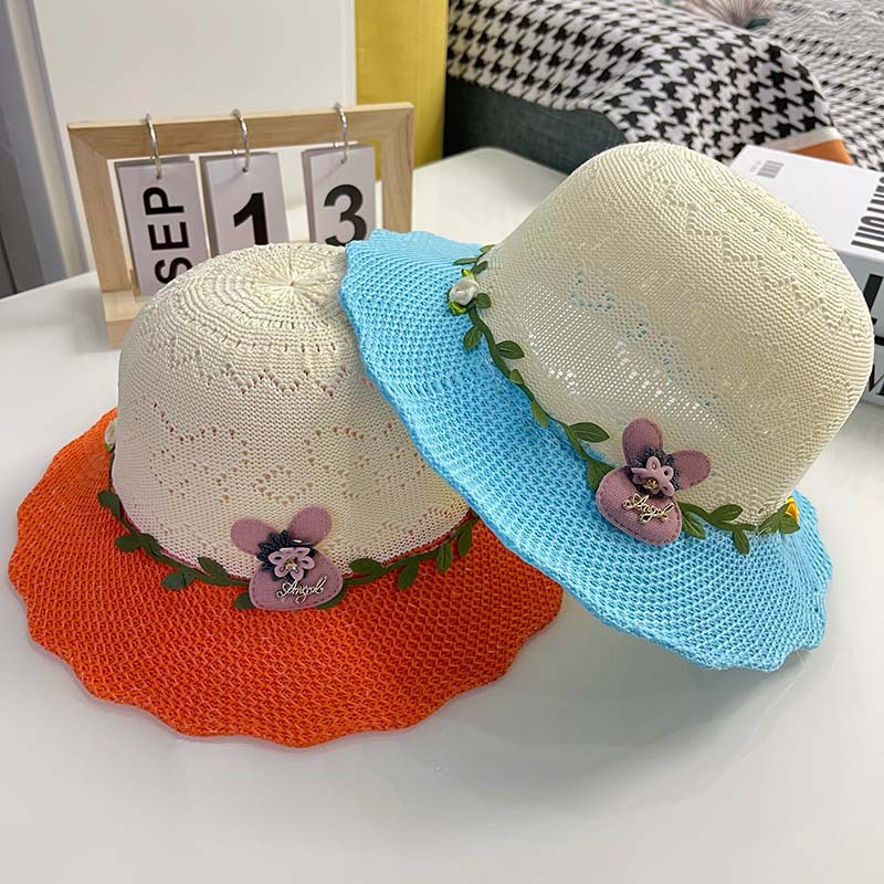 봄과 여름 큰 처마 차양 밀짚 모자 어린이 만화 여행 야외 소년 소녀 베이비 비치 선 스크린 모자스토어 가기