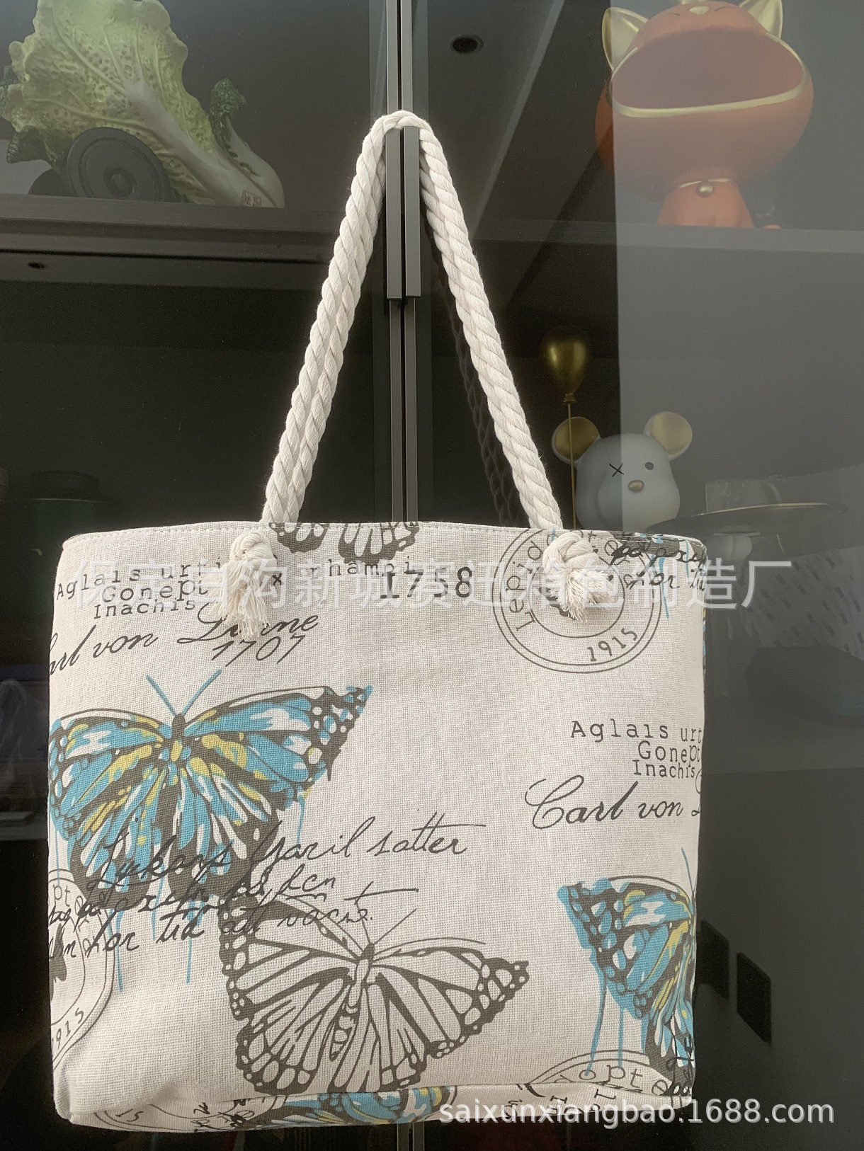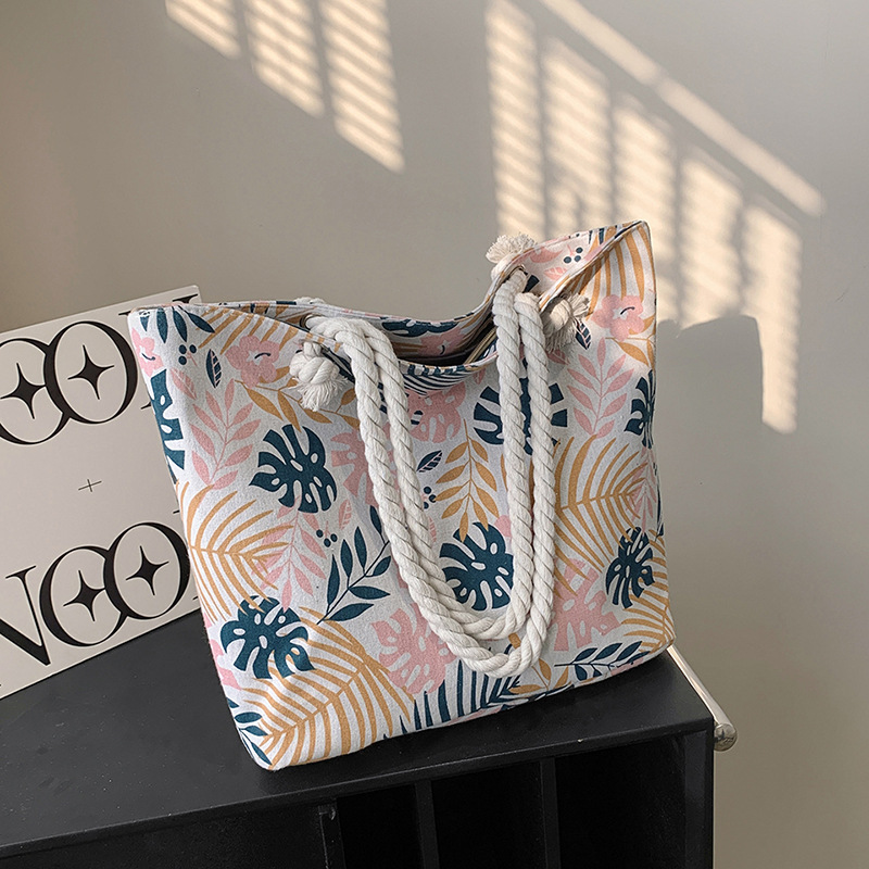 크리에이 티브 인쇄 숄더 백 새로운 캐주얼 패션 캔버스 여성 가방 한국 스타일 어깨 크로스 바디 두꺼운 로프 비치 백스토어 가기